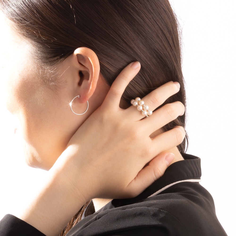 カットを施したピアス。光を受けてキラキラと輝き、お顔周りを華やかに彩ります。