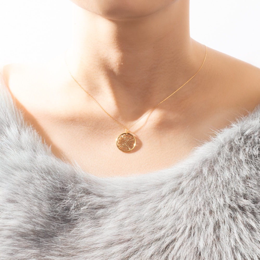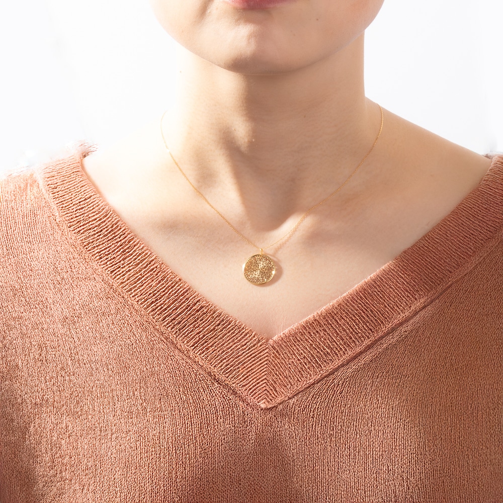 リバーシブルだから、その日の装いに合わせて表情を変え、オシャレが楽しくなるジュエリー。イエローゴールドのジュエリーはカジュアルなファッションにも合わせやすいです。