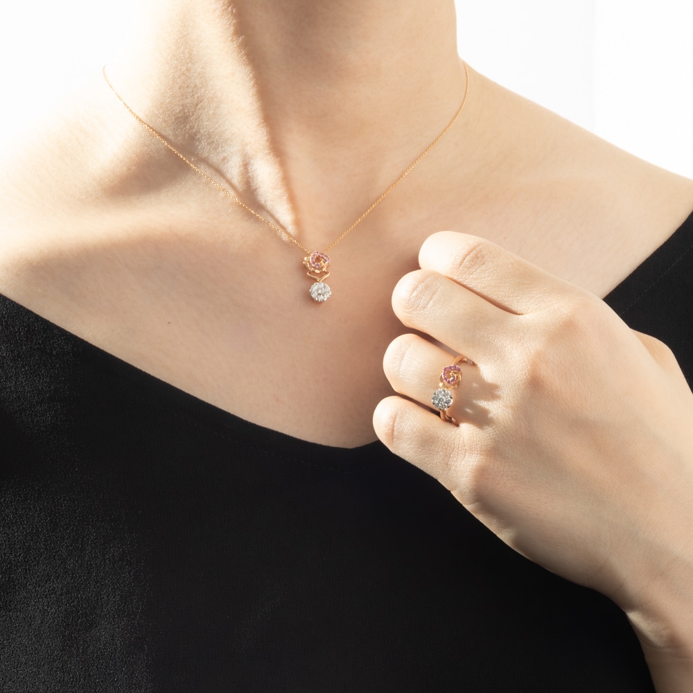 ダイヤモンドの輝きが際立つリング。お揃いのネックレスと合わせてお使いいただけます。