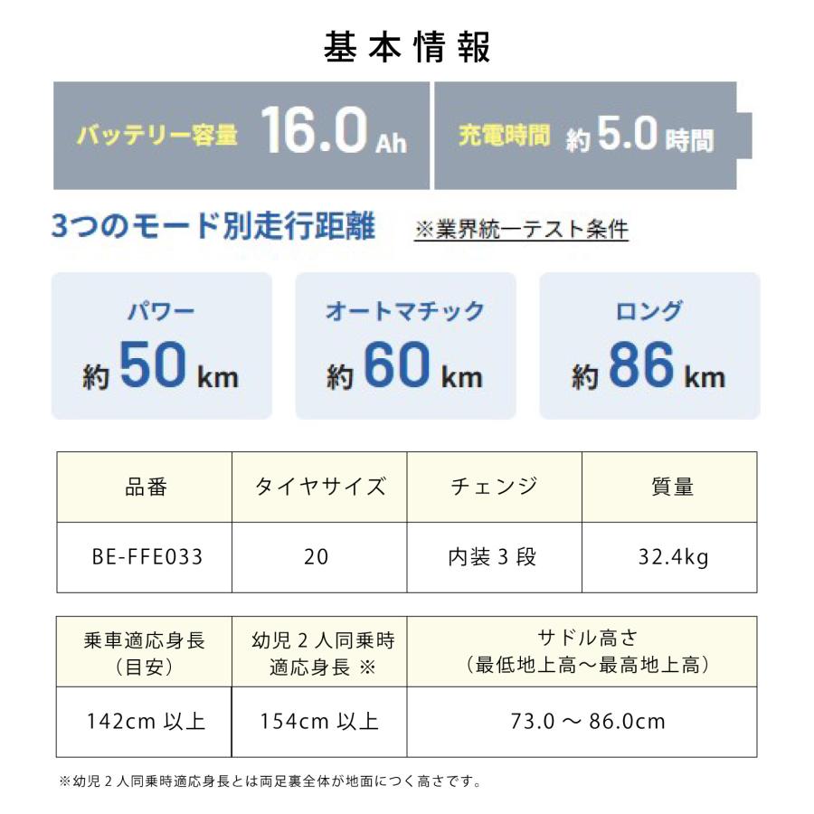 ・乗車適応身長は、1人で乗車時、両足のつま先が地面に着地できる身長を指します。幼児2人同乗時、両足のかかとが地面に着地できる身長を指します。