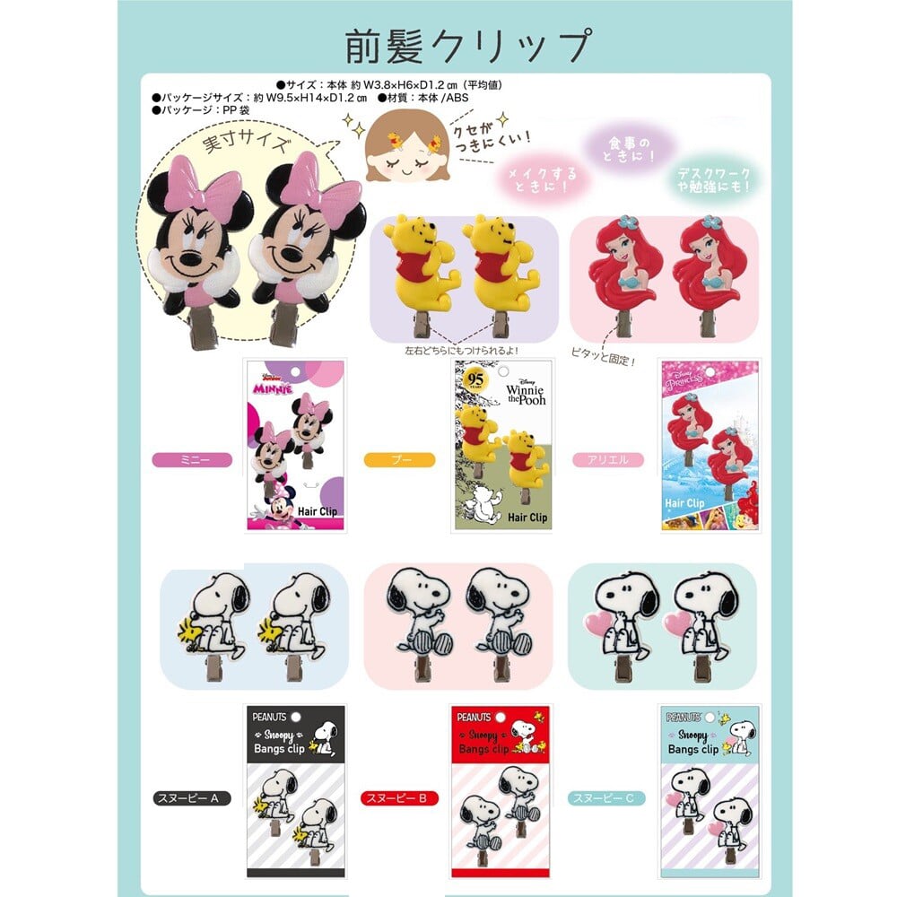 スヌーピー&ディズニー前髪ヘアクリップ