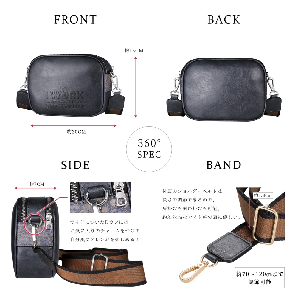 サイズ(約):本体/縦15cm×横20cm×マチ7cm、ストラップ/ (約)70cm~120cm(長さの調節可能)