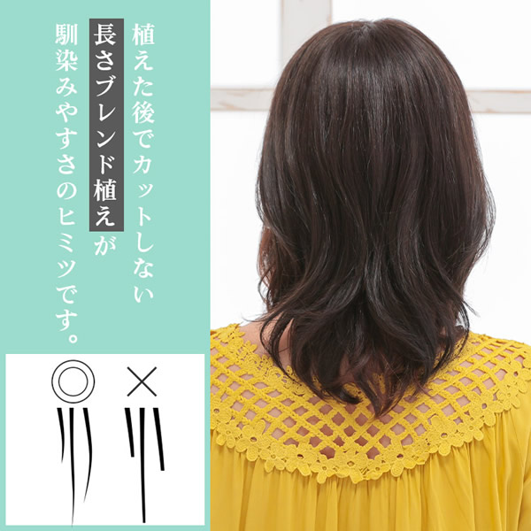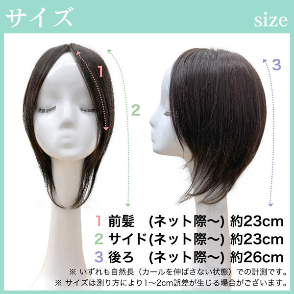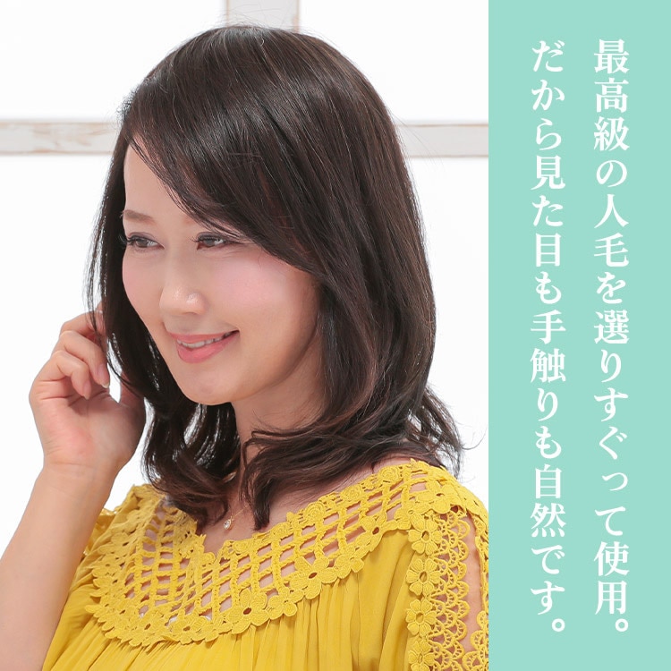 【商品詳細】 商品名: アクアドール 総手植え人毛MIXヘアピース ワイドリアルスキン ナチュラルロング カラー: CBRM.ショコラブラウン・人毛MIX CBKM.ショコラブラック・人毛MIX NBKM.ナチュラルブラック・人毛MIX PBKM.ピュアブラック・人毛MIX ※カラーについて 商品写真はできる限り実物の色に近づけるよう加工しておりますが、お客様がご使用するモニター設定や部屋の照明により実際の商品とは色味が異なる場合があります。 長さ: 1.前髪(ネット際~) 約23cm 2.サイド(ネット際~) 約23cm 3.バック(ネット際~) 約26cm 4.ベースネット 縦 約15.5cm 5.ベースネット 横 約17cm 6.人工頭皮 縦 約12cm 7.人工頭皮 横 約7.5cm ※いずれも自然長(カールを伸ばさない状態)での計測です。若干の誤差がある場合があります。 重さ: 約59g 耐熱温度: コテ・アイロン・ドライヤー180度まで使用可能(130度ぐらいがベストです)。 温度設定が高すぎたり、加熱時間が長すぎると、ウィッグが傷む恐れがありますのでご注意ください。 カール商品は、ストレートアイロンでしっかり延ばすとカールが戻らなくなる可能性があります。 自毛(人毛)の場合は熱を加えた時点でカールがつきますが、ウィッグの場合は冷ます工程でカールさせます。 人毛MIXの特性: ファイバーを含む製品のため、カラーリング・パーマはできません。また、ドライヤーでの乾燥も極力お控えください(自然乾燥推奨)。 ファイバーよりもクセが付きやすい人毛を含んでいるため、納品時に収納癖がついている場合があります。収納癖は、ご自身でコテ・アイロンなどでスタイルを微調整すると直ります。 ※コテ・アイロンの際は180度まで使用可能(130度ぐらいがベスト)です。 仕様: シャンプー・ブラッシング可能/人工頭皮付き/クリップ4つ 同梱内容: ウィッグ本体 ウィッグ保護用ネット 使い方説明書 その他: ●モデル着用ウィッグはモデルに合わせてブラッシング、若干のカット、整髪料を使用してのスタイリングを行っています。 ●毛先から軽くふわっとブラッシングするとよりナチュラルに着用できます。 ●初めてブラッシングされる際、生産工程の残り毛がある場合がございます。 ●しばらくブラッシングしていただけましたら落ち着きますので品質には問題ございません。 ※製品の仕様向上のため、製品の仕様は、予告なしに若干の変更がされる場合があります。 注意事項: 当社では複数店舗で在庫を共有しており、システムで在庫調整を行っておりますが、TV放映等による一時的な注文数の増大や、在庫の更新タイミングにより在庫にずれが生じる場合がございます。 在庫更新が間に合わずご注文頂いた商品が欠品となる場合もございます。 欠品が生じた場合や商品の発送が遅れる場合は、改めてご連絡させていただきます。 ご迷惑をお掛けする場合がございますが、あらかじめご了承くださいませ。 広告文責: 株式会社エーウィル 0747-26-5566 関連キーワード: ウィッグ ウイッグ つけ毛 かつら エクステ ハロウィン 七五三 クリスマス Xmas 夏祭り お正月 成人式 成人の日 バレンタインデー ホワイトデー ひな祭り 雛祭り 入学 入社 就職 卒業 卒園 新生活 新年度 記念日 お祝い プレゼント ギフト 贈り物 口コミ クチコミ 人気 レビュー 評判 通販 おすすめ