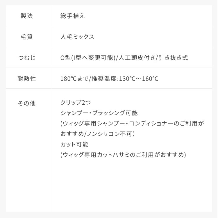 【商品詳細】 商品名: アクアドール 総手植え人毛MIXヘアピース シルクスキン レイヤーショート [ahp028] カラー: CBRM.ショコラブラウン・人毛MIX CBKM.ショコラブラック・人毛MIX NBKM.ナチュラルブラック・人毛MIX PBKM.ピュアブラック・人毛MIX ※カラーについて 商品写真はできる限り実物の色に近づけるよう加工しておりますが、お客様がご使用するモニター設定や部屋の照明により実際の商品とは色味が異なる場合があります。 製法: 総手植え 毛質: 人毛MIX つむじ: O型(I型へ変更可能)/人口頭皮付き/引き抜き式 耐熱性: 180℃まで/推奨温度 130℃~160℃ その他: クリップ2つ シャンプー・ブラッシング可能(ウィッグ専用シャンプー・コンディショナーのご利用がおすすめ/ノンシリコン不可) カット可能(ウィッグ専用カットハサミのご利用がおすすめ) 注意事項: 当社では複数店舗で在庫を共有しており、システムで在庫調整を行っておりますが、TV放映等による一時的な注文数の増大や、在庫の更新タイミングにより在庫にずれが生じる場合がございます。 在庫更新が間に合わずご注文頂いた商品が欠品となる場合もございます。 欠品が生じた場合や商品の発送が遅れる場合は、改めてご連絡させていただきます。 ご迷惑をお掛けする場合がございますが、あらかじめご了承くださいませ。 広告文責: 株式会社エーウィル 0747-26-5566 関連キーワード: ウィッグ ウイッグ つけ毛 かつら エクステ ハロウィン 七五三 クリスマス Xmas 夏祭り お正月 成人式 成人の日 バレンタインデー ホワイトデー ひな祭り 雛祭り 入学 入社 就職 卒業 卒園 新生活 新年度 記念日 お祝い プレゼント ギフト 贈り物 口コミ クチコミ 人気 レビュー 評判 通販 おすすめ