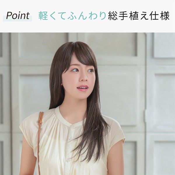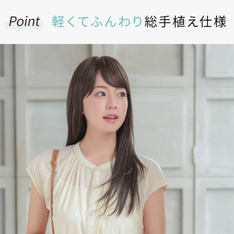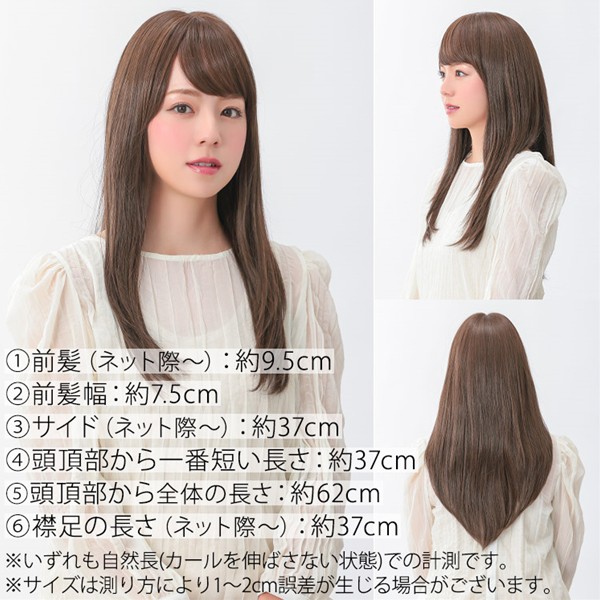 【商品詳細】 商品名: アクアドール ヴィーナス シンプルレイヤーロング[pw116] 商品説明: スタイル全体にレイヤーを入れる事で、抜け感と柔らかさをプラス。 作り込みすぎないナチュラルロングで、 女性らしい抜け感と柔らかさを演出します。 透明感のあるロングスタイルには、軽いシースルーバングで。 長めで斜めに流した前髪がフェミニンに仕上げます。 どんな場面でも好印象に見える上品な長さです。 アクアドールヴィーナスは一本一本丁寧に手作業で毛を植えているから、ソフトな付け心地で自然なボリューム感を実現! 柔らかく伸びるメッシュ生地の網目に植え付けることで、風が通り抜ける通気性の良さを感じてください。 通気性が高く、伸縮性のあるメッシュ素材のウィッグキャップを採用しています! アジャスターで自由に、自分にぴったりのサイズに調整することができます。 アクアドールヴィーナスはNBKを除き、複数の色のファイバーをブレンドして作り上げています。 また、ウィッグ業界では手に入りにくい「日本製マットファイバー」を贅沢に使用したことでファイバーウィッグの難点だったテカリを軽減。 “ウィッグはテカリが出てしまう”というイメージを変えました。 テカリを気にせずに美髪の質感を楽しんで頂けます。 耐熱性のある人工毛だから 形状記憶性が高いのでスタイリングも簡単。 人毛には無い手軽さで毎日のオシャレを楽しんでいただけます。 サイズ: フリーサイズ(アジャスターによりサイズ調整可能) 長さ: 1.前髪 約9.5cm 2.前髪幅 約7.5cm 3.サイド 約37cm 4.頭頂部から一番短い長さ 約37cm 5.頭頂部から全体の長さ 約62cm 6.襟足の長さ 約37cm ※いずれも自然長(カールを伸ばさない状態)での計測です。若干の誤差がある場合があります。 重さ: 約170g カラー: SBE.シルキーベージュ MBR.モカブラウン BRN.ブラウン GBR.ジンジャーブラウン DRB.ダークブラウン NBK.ナチュラルブラック ※カラーについて 商品写真はできる限り実物の色に近づけるよう加工しておりますが、お客様がご使用するモニター設定や部屋の照明により実際の商品とは色味が異なる場合があります。 耐熱温度: コテ・アイロン・ドライヤー180度まで使用可能(130度ぐらいがベストです)。 温度設定が高すぎたり、加熱時間が長すぎると、ウィッグが傷む恐れがありますのでご注意ください。 カール商品は、ストレートアイロンでしっかり延ばすとカールが戻らなくなる可能性があります。 自毛(人毛)の場合は熱を加えた時点でカールがつきますが、ウィッグの場合は冷ます工程でカールさせます。 仕様: シャンプー・ブラッシング可能/人工頭皮付き/こめかみワイヤー付き 同梱内容: ウィッグ本体 ウィッグ保護用ネット ウィッグ専用ネット 使い方説明書 備考: ・モデル着用ウィッグはモデルに合わせてブラッシング、若干のカット、整髪料を使用してのスタイリングを行っています。 ・毛先から軽くふわっとブラッシングするとよりナチュラルに着用できます。 ・初めてブラッシングされる際、生産工程の残り毛がある場合がございます。 ・しばらくブラッシングしていただけましたら落ち着きますので品質には問題ございません。 ※製品の仕様向上のため、製品の仕様は、予告なしに若干の変更がされる場合があります。 注意事項: 当社では複数店舗で在庫を共有しており、システムで在庫調整を行っておりますが、TV放映等による一時的な注文数の増大や、在庫の更新タイミングにより在庫にずれが生じる場合がございます。 在庫更新が間に合わずご注文頂いた商品が欠品となる場合もございます。 欠品が生じた場合や商品の発送が遅れる場合は、改めてご連絡させていただきます。 ご迷惑をお掛けする場合がございますが、あらかじめご了承くださいませ。 広告文責: 株式会社エーウィル 0747-26-5566 関連キーワード: ウィッグ ウイッグ つけ毛 かつら エクステ ハロウィン 七五三 クリスマス Xmas 夏祭り お正月 成人式 成人の日 バレンタインデー ホワイトデー ひな祭り 雛祭り 入学 入社 就職 卒業 卒園 新生活 新年度 記念日 お祝い プレゼント ギフト 贈り物 口コミ クチコミ 人気 レビュー 評判 通販 おすすめ