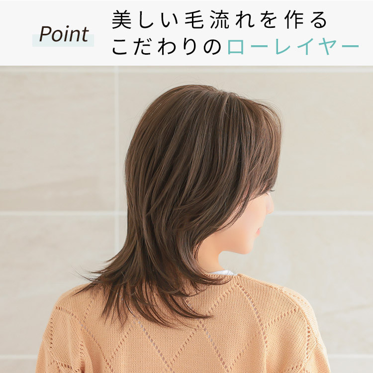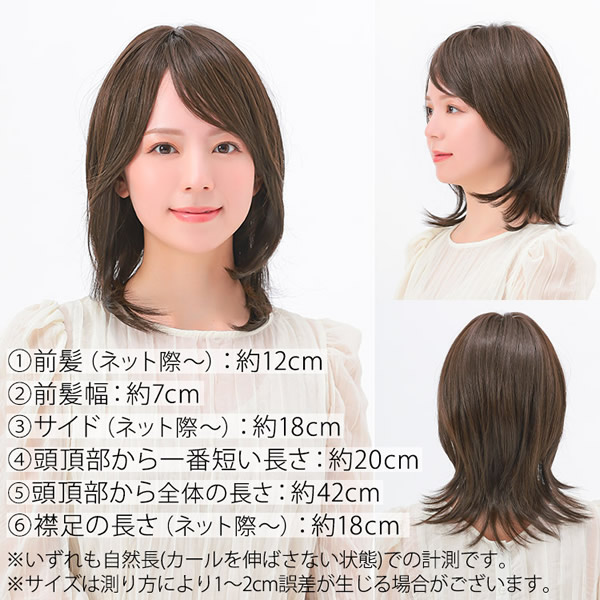 【商品詳細】 商品名: アクアドール ヴィーナス みやびやかレイヤー [pw209] カラー: SBE.シルキーベージュ BRN.ブラウン GBR.ジンジャーブラウン DRB.ダークブラウン ※カラーについて 商品写真はできる限り実物の色に近づけるよう加工しておりますが、お客様がご使用するモニター設定や部屋の照明により実際の商品とは色味が異なる場合があります。 サイズ: フリーサイズ(アジャスターによりサイズ調整可能) 長さ: 1.前髪 約12cm 2.前髪幅 約7cm 3.サイド 約18cm 4.頭頂部から一番短い長さ 約20cm 5.頭頂部から全体の長さ 約42cm 6.襟足の長さ 約18cm ※いずれも自然長(カールを伸ばさない状態)での計測です。若干の誤差が生じる場合がございます。 重さ: 約103g 耐熱温度: コテ・アイロン・ドライヤー180度まで使用可能(130度~160度がおすすめです)。 温度設定が高すぎたり、加熱時間が長すぎると、ウィッグが傷む恐れがありますのでご注意ください。 カール商品は、ストレートアイロンでしっかり延ばすとカールが戻らなくなる可能性があります。 自毛(人毛)の場合は熱を加えた時点でカールがつきますが、ウィッグの場合は冷ます工程でカールさせます。 仕様: シャンプー・ブラッシング可能/人工頭皮付き/こめかみワイヤー付き 同梱内容: ウィッグ本体 ウィッグ保護用ネット ウィッグ・かつら用専用ネット 使い方説明書 その他: ●モデル着用ウィッグはモデルに合わせてブラッシング、若干のカット、整髪料を使用してのスタイリングを行っています。 ●毛先から軽くふわっとブラッシングするとよりナチュラルに着用できます。 ●初めてブラッシングされる際、生産工程の残り毛がある場合がございます。 ●しばらくブラッシングしていただけましたら落ち着きますので品質には問題ございません。 ※製品の仕様向上のため、製品の仕様は、予告なしに若干の変更がされる場合があります。 注意事項: 当社では複数店舗で在庫を共有しており、システムで在庫調整を行っておりますが、TV放映等による一時的な注文数の増大や、在庫の更新タイミングにより在庫にずれが生じる場合がございます。 在庫更新が間に合わずご注文頂いた商品が欠品となる場合もございます。 欠品が生じた場合や商品の発送が遅れる場合は、改めてご連絡させていただきます。 ご迷惑をお掛けする場合がございますが、あらかじめご了承くださいませ。 広告文責: 株式会社エーウィル 0747-26-5566 関連キーワード: ウィッグ ウイッグ つけ毛 かつら エクステ ハロウィン 七五三 クリスマス Xmas 夏祭り お正月 成人式 成人の日 バレンタインデー ホワイトデー ひな祭り 雛祭り 入学 入社 就職 卒業 卒園 新生活 新年度 記念日 お祝い プレゼント ギフト 贈り物 口コミ クチコミ 人気 レビュー 評判 通販 おすすめ