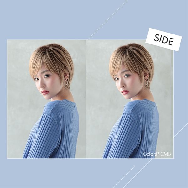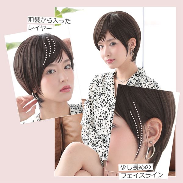 【商品詳細】 商品名: アクアドール ボニータショートウィッグ[wg300] 商品説明: マニッシュショートをベースに、 サイドと襟足を長めに残したことで、 スマートな表情に。 前髪やサイドに施したレイヤーが フェイスラインを包み込むことで、 目力を引き立て、 小顔効果のあるショートウィッグです。 丸みを残して、襟足を首に沿うよう すっきりとさせた、 美シルエットのショートスタイル。 これ、実は顔が小さく見える髪型なんです! また、フェイスラインを少し長めに残し、 前髪からレイヤーを入れることで 顔の輪郭をナチュラルにカバーします。 ちょっとした工夫ですが、小顔効果は絶大! ショートヘア、試してみたいけど 切る勇気が……と思っている貴方も ウィッグなら気軽にイメチェン出来ますよ♪ ”前髪あり”は可愛さを演出するだけじゃ ないんです。 左分けの前髪は、知的なイメージ・ 大人っぽさ・綺麗め美人な印象を与え、 芯がしっかりした、誠実な雰囲気に。 凛とした空気感の中にも親しみも忘れない、 ”イイ女”になれちゃうんです。 日本人の髪では染まりにくいアッシュ系や マット系の髪色を多数採用! ベーシックなお色はもちろん、 流行りのくすみ系や、 肌なじみの良い色味など、 アクアドールが自信をもって ご紹介するカラーバリエーションです。 豊富にご用意しましたので、 あなたの”お気に入り”が きっと見つかるはずです。 自然で可愛いカラーがいい! おしゃれなスタイルがいい! 今までとちょっと違ったカラーも 楽しみたい! そんなあなたに、人気急上昇の プリンカラーをおすすめします。 お洒落かつリアルなヘアカラーに なっています。 アクアドールオリジナルの最新の染色を 施しているので まるで本物の自毛のように自然です! サイズ: フリーサイズ(アジャスターによりサイズ調整可能) 長さ: 1.前髪 約11cm 2.サイド 約8cm 3.頭頂部から全体の長さ 約31cm ※いずれも自然長(カールを伸ばさない状態)での計測です。若干の誤差がある場合があります。 重さ: 約98g カラー: WBG.ウォーターベージュ SBG.サクラベージュ PG.パールグレージュ SBR.シースルーブラウン NBR.ナチュラルブラウン DBR.ディープブラウン MBK.マットブラック JBK.ジャパニーズブラック P-CMB.シナモンベージュプリン ※カラーについて 商品写真はできる限り実物の色に近づけるよう加工しておりますが、お客様がご使用するモニター設定や部屋の照明により実際の商品とは色味が異なる場合があります。 耐熱温度: コテ・アイロン・ドライヤー180度まで使用可能(130度ぐらいがベストです)。 温度設定が高すぎたり、加熱時間が長すぎると、ウィッグが傷む恐れがありますのでご注意ください。 カール商品は、ストレートアイロンでしっかり延ばすとカールが戻らなくなる可能性があります。 自毛(人毛)の場合は熱を加えた時点でカールがつきますが、ウィッグの場合は冷ます工程でカールさせます。 仕様: シャンプー・ブラッシング可能/人工頭皮付き 同梱内容: ウィッグ本体 ウィッグ保護用ネット ウィッグ専用ネット 使い方説明書 備考: ※ふかし加工について ボリュームを出すために内側にフカシ加工を施してあります。 予めご了承お願いします。 ※製造工程の都合により、商品の若干の仕様は予告なく変更される場合があります。 ・モデル着用ウィッグはモデルに合わせてブラッシング、若干のカット、整髪料を使用してのスタイリングを行っています。 広告文責: 株式会社エーウィル 0747-26-5566 関連キーワード: ウィッグ ウイッグ つけ毛 かつら エクステ ハロウィン 七五三 クリスマス Xmas 夏祭り お正月 成人式 成人の日 バレンタインデー ホワイトデー ひな祭り 雛祭り 入学 入社 就職 卒業 卒園 新生活 新年度 記念日 お祝い プレゼント ギフト 贈り物 口コミ クチコミ 人気 レビュー 評判 通販 おすすめ