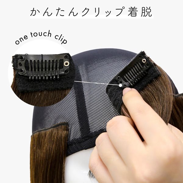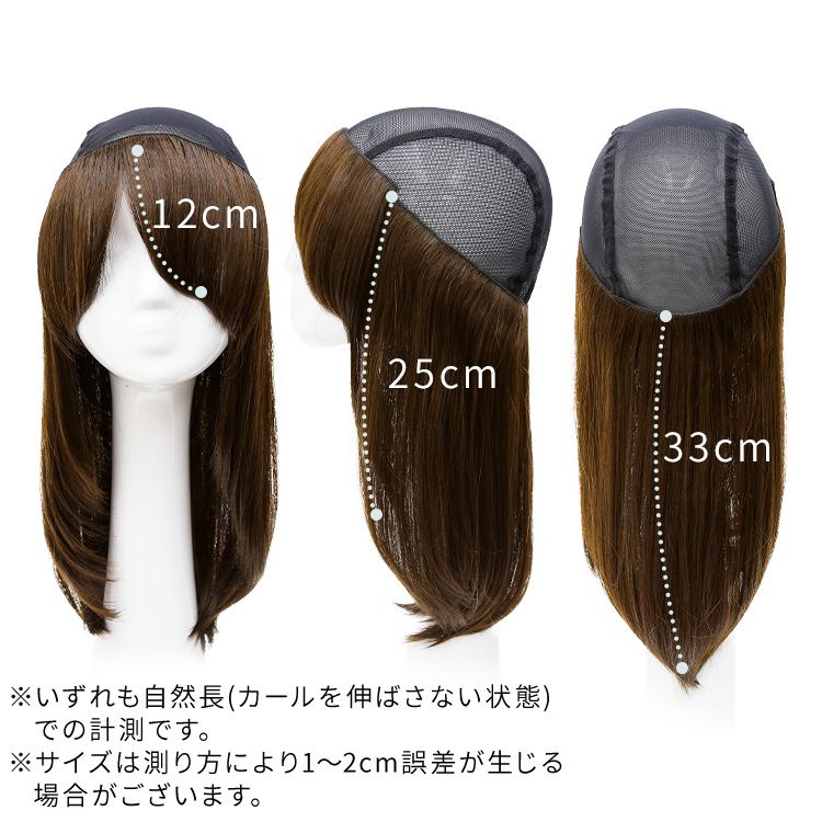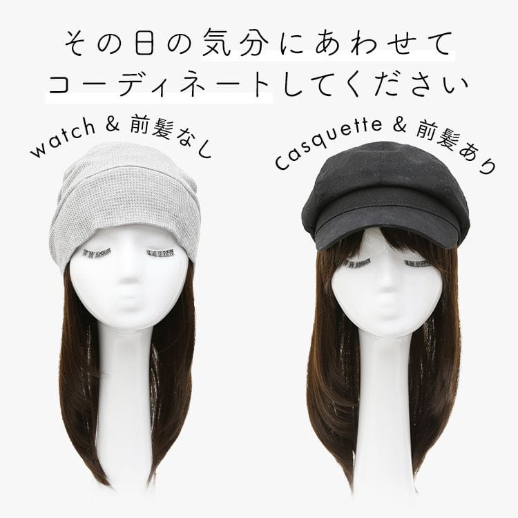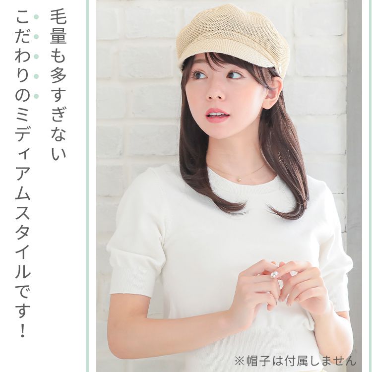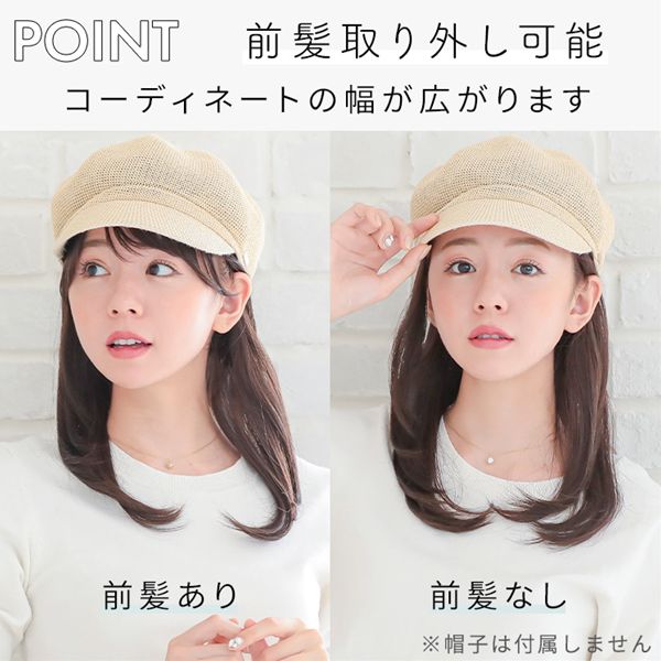 【商品詳細】 商品名: アクアドール 前髪取り外し式髪付き帽子ミディアムレイヤー人毛MIX[wgn017] 商品説明: 『髪付き帽子とは…?』 後頭部部分が通気性のよいネットになった、帽子と合わせてお使いいただく医療用ウィッグです。 メッシュ部分を帽子で隠して、帽子から髪の毛が出ているようなスタイルを簡単に作れます。 さっと整えるだけで着用でき、フルウィッグと比べ締め付けが少ないため、楽にお使いいただけます。 脱毛症の方、がん治療中の方の声から誕生した人気の商品です。 髪付き帽子の最大の特徴は、帽子のようにパッとつければキマるところ。 フルウィッグをお休みしたい時、コンビニや、近くのスーパーのお買い物など、近距離のお出かけにも便利な髪付き帽子です。 フェミニンなセミロングスタイル。 髪付き帽子だから長めでも軽い付け心地で、 ストレスなく着用して頂けます。 女性らしいスタイルが好きな方へ、 使いやすいシンプルなワンカールです。 自然な見た目と、スタイリングやお手入れがしやすく、扱いやすさも兼ね備えたいいとこどりの髪質です。 アクアドールの髪付き帽子は、クリップ式で簡単に前髪を取り外しできます。 コーディネートに合わせて「前髪あり」と「前髪なし」を使い分けて♪ サイズ: フリーサイズ 長さ: 前髪 約12cm 横髪 約25cm 後髪 約33cm ※いずれも自然長(カールを伸ばさない状態)での計測です。若干の誤差がある場合があります。 頭囲: 約55cm 重さ: 約71g(重さは前髪を含みます) 仕様: 前髪取り外し式・人毛MIX(人毛30%人工毛70%) カラー: BKM.黒・人毛MIX FBRM.明るい自然茶・人毛MIX ※カラーについて 商品写真はできる限り実物の色に近づけるよう加工しておりますが、お客様がご使用するモニター設定や部屋の照明により実際の商品とは色味が異なる場合があります。 お手入れ方法: 1.洗面器に水またはぬるま湯とシャンプーを適量入れ、1~2分浸してからゆっくり押し洗いしてすすいでください。 2.同様にコンディショナーを適量入れ、1~2分浸してから軽くすすぎ、タオルなどを使って、しっかり水気をとってください。 3.ウィッグ用のスタンドやハンガーにかけて、風通しのよい日陰で乾燥させます(自然乾燥がおすすめですが、お急ぎの場合はドライヤーでもOK)。 ※ご使用後は髪の毛部分のホコリや花粉などを軽く払います。頻繁に洗う必要はありませんが、後頭部のネット部分は清潔に保つことが大切です(お好みでインナーキャップを着けてからご使用ください)。 ※コテ・アイロン・ドライヤーは180℃まで使用可能です(130℃くらいがおすすめです)。 ご使用上の注意: ・お肌に合わない場合はすみやかに使用を中止してください。※アレルギー体質の方は特にご注意ください。 ・火気、高熱の近くで使用しないでください。 ・最初は多少の抜け毛がございます、ご使用前に軽くブラッシングをしてご使用ください。 ・お子様の手の届かない所に保管ください。 ・カラーリングはできません。 備考: ・帽子は付属しておりません。商品写真着用の帽子はイメージです。ご自身で帽子を用意し、ご一緒にお使いください。 ・モデル着用ウィッグはモデルに合わせてブラッシング、若干のカット、整髪料を使用してのスタイリングを行っています。 ※製品の仕様向上のため、製品の仕様は、予告なしに若干の変更がされる場合があります。 広告文責: 株式会社エーウィル 0747-26-5566 関連キーワード: ウィッグ ウイッグ つけ毛 かつら エクステ ハロウィン 七五三 クリスマス Xmas 夏祭り お正月 成人式 成人の日 バレンタインデー ホワイトデー ひな祭り 雛祭り 入学 入社 就職 卒業 卒園 新生活 新年度 記念日 お祝い プレゼント ギフト 贈り物 口コミ クチコミ 人気 レビュー 評判 通販 おすすめ