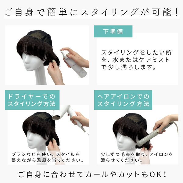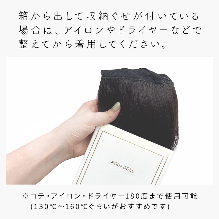 【商品詳細】 商品名: アクアドール 前髪取り外し式髪付き帽子ショート人毛100% カラー: NBRJ.ナチュラルブラウン・人毛100% NBKJ.ナチュラルブラック・人毛100% ※カラーについて 商品写真はできる限り実物の色に近づけるよう加工しておりますが、お客様がご使用するモニター設定や部屋の照明により実際の商品とは色味が異なる場合があります。 サイズ: フリーサイズ 長さ: 前髪 約10cm 横髪 約17cm 後髪 約17cm ※いずれも自然長(カールを伸ばさない状態)での計測です。若干の誤差がある場合があります。 頭囲: 約55cm 重さ: 約51g(重さは前髪を含みます) 人毛100%の特性: 人毛100%なので、ご自身の髪と同じように、ぬるま湯洗いやドライヤー・カラーリング・パーマなどが可能です。 ファイバー製商品よりもクセが付きやすいという人毛100%商品の特性上、納品時に収納癖がついている場合があります。 収納癖は、ご自身でコテ・アイロンなどでスタイルを微調整すると直ります。 仕様: 前髪取り外し式・人毛100% 使用上の注意: ●お肌に合わない場合はすみやかに使用を中止してください。※アレルギー体質の方は特にご注意ください。 ●火気、高熱の近くで使用しないでください。 ●最初は多少の抜け毛がございます、ご使用前に軽くブラッシングをしてご使用ください。 ●お子様の手の届かない所に保管ください。 その他: ●帽子は付属しておりません。商品写真着用の帽子はイメージです。ご自身で帽子を用意し、ご一緒にお使いください。 ●着用にあたりウィッグネットやインナーキャップは不要ですが、汗等の付着が気になる方、頭皮への肌あたりが気になる方はインナーキャップなどをご着用ください。 ●モデル着用ウィッグはモデルに合わせてブラッシング、若干のカット、整髪料を使用してのスタイリングを行っています。 ※製品の仕様向上のため、製品の仕様は、予告なしに若干の変更がされる場合があります。 注意事項: 当社では複数店舗で在庫を共有しており、システムで在庫調整を行っておりますが、TV放映等による一時的な注文数の増大や、在庫の更新タイミングにより在庫にずれが生じる場合がございます。 在庫更新が間に合わずご注文頂いた商品が欠品となる場合もございます。 欠品が生じた場合や商品の発送が遅れる場合は、改めてご連絡させていただきます。 ご迷惑をお掛けする場合がございますが、あらかじめご了承くださいませ。 広告文責: 株式会社エーウィル 0747-26-5566 関連キーワード: ウィッグ ウイッグ つけ毛 かつら エクステ ハロウィン 七五三 クリスマス Xmas 夏祭り お正月 成人式 成人の日 バレンタインデー ホワイトデー ひな祭り 雛祭り 入学 入社 就職 卒業 卒園 新生活 新年度 記念日 お祝い プレゼント ギフト 贈り物 口コミ クチコミ 人気 レビュー 評判 通販 おすすめ