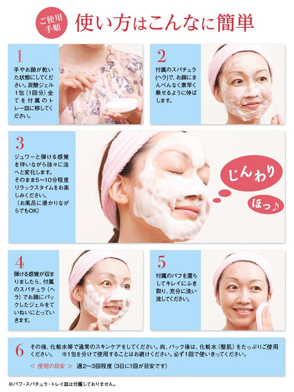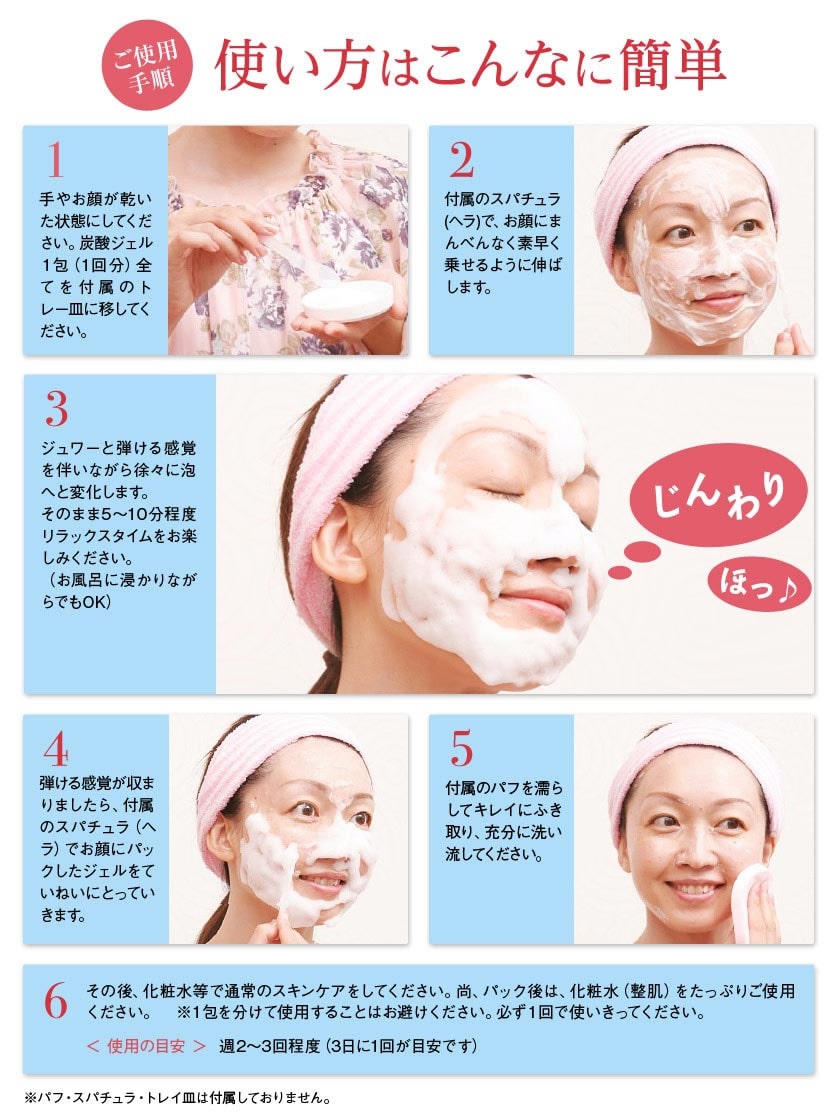 【商品詳細】 商品名: 業務用炭酸パック ブランジュ・プロ 内容量: 10g×3包入 成分: 水、DPG、メチルパーフルオロイソブチルエーテル、メチルパーフルオロブチルエーテル、デシルグルコシド、カルボマー、炭酸水素Na、ミルシアリアデュビア果実エキス、(メタクリル酸グリセリルアミドエチル/メタクリル酸ステアリル)コポリマー、グリセリン、オクチルドデセス-20、スクワラン、ローズマリーエキス、クロレラエキス、甘草エキス、カッコンエキス、アロエベラ葉エキス、キサンタンガム、BG、シリカ、水酸化Na、フェノキシエタノール 使用方法: 手や顔が濡れていない状態で、本品を全てお顔全体に満遍なく乗せるようにのばします。 ジュワーと弾ける炭酸が5~10分くらいで収まりましたら、よく洗い流して下さい。 使用上の注意: お肌に合わない場合はご使用を中止して、皮膚科専門医へご相談してください。 製造国: 日本 区分: 化粧品 メーカー: 株式会社カラーロード 注意事項: 当社では複数店舗で在庫を共有しており、システムで在庫調整を行っておりますが、TV放映等による一時的な注文数の増大や、在庫の更新タイミングにより在庫にずれが生じる場合がございます。 在庫更新が間に合わずご注文頂いた商品が欠品となる場合もございます。 欠品が生じた場合や商品の発送が遅れる場合は、改めてご連絡させていただきます。 ご迷惑をお掛けする場合がございますが、あらかじめご了承くださいませ。 広告文責: 株式会社エーウィル 0747-26-5566