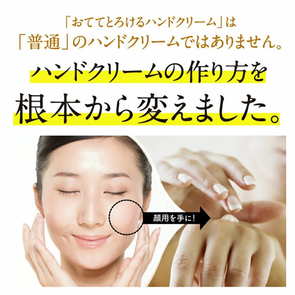 【商品詳細】 商品名: おててとろけるハンドクリーム 商品説明: 新「水仕事対応型」ハンドクリーム。 塗布後もべたべた、ぬるぬるしないので、すぐに作業ができます。 潤いとサラサラの絶妙なバランスを徹底して実現しました! 内容量: 28g 成分: 水、セタノール、グリセリン、プロパンジオール、ジメチコン、トリ(カプリル酸/カプリン酸)グリセリル、ステアリン酸グリセリル(SE)、ステアリン酸、セテアリルアルコール、カプリン酸グリセリル、シア脂、スクワラン、ホホバ種子油、トコフェロール、セイヨウハッカ葉エキス、オタネニンジン根エキス、キュウリ果実エキス、シソ葉エキス、ダイズ種子エキス、ユズ果実エキス、アスコフィルムノドスム/ヒバマタ/ヒジキ/トロロコンブ/レソニアニグレスセンス/ミツイシコンブ/リシリコンブ/ワカメエキス、ヒアルロン酸Na、水溶性コラーゲン、シアノコバラミン、カニナバラ果実油、グリチルリチン酸2K、テトラヘキシルデカン酸アスコルビル、加水分解卵殻膜、塩化Na、キサンタンガム、セテス-2、セテアリルグルコシド、PPG-6デシルテトラデセス-30、ラウリン酸ポリグリセリル-2、ラウリン酸ポリグリセリル-10、エタノール、BG、カプリリルグリコール、1,2-ヘキサンジオール、ジメチロールプロピオン酸ヘキシル、ペンチレングリコール 使用方法: 適量を乾いた手の甲や指先にマッサージするように、まんべんなくのばしてください。 使用上のご注意: ●傷、はれもの、湿しん等、異常のある時はご使用をおやめください。 ●お肌に異常が生じていないかよく注意して使用してください。 ●爪に異常があるときは、ご使用にならないでください。 ●使用中、又は使用後日光にあたって、赤み、はれ、かゆみ、刺激、色抜け(白斑等)や黒ずみ等の異常が現れた時は、使用を中止し、皮膚科専門医へご相談をおすすめします。そのまま化粧品類の使用を続けますと悪化することがあります。 ●極端に高温又は低温の場所、直射日光のあたる場所には保管しないでください。 区分: 化粧品 製造国: 日本 販売者: 株式会社すはだみらい研究所 広告文責: 株式会社エーウィル 0747-26-5566