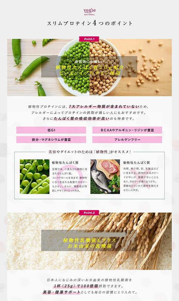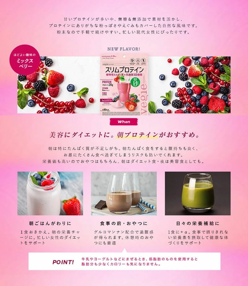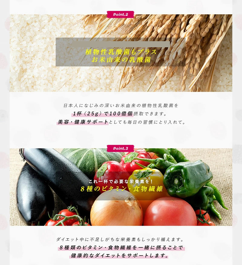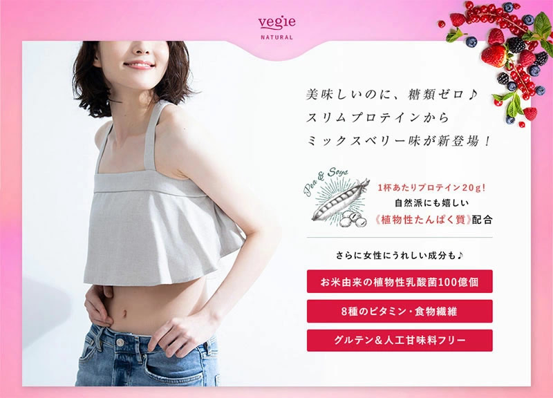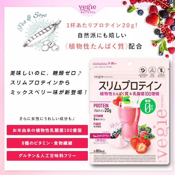 【商品詳細】 名称: エンドウたんぱく含有加工食品 商品説明: 糖質ゼロのたんぱく質エンドウ豆由来成分<ピープロテイン>配合プロテインドリンク。 粉末タイプなので手軽で続けやすく、忙しい女性にピッタリです。 程よい酸味のミックスベリー味。 内容量: 150g (6~20回分) 原材料名: 大豆たんぱく(アメリカ製造)、水溶性食物繊維、エンドウたんぱく、植物性乳酸菌(殺菌)、果汁エキス混合末(デキストリン、ブルーベリー果汁、ブラックカーラント果汁、レッドラズベリー果汁、アロニア果汁、リンゴンベリー果汁、アサイーエキス)、ストロベリー果汁パウダー(デキストリン、砂糖、ストロベリー濃縮果汁)、野菜ミックスパウダー(大麦若葉、ケール、ブロッコ リー、南瓜、チンゲン菜、パセリ、人参、セロリ、苦瓜、ほうれん草、桑の葉、モロヘイヤ、よもぎ、トマト)、パン酵母粉末(ブドウ糖、マンガン含有酵母、亜鉛含有酵母、銅含有酵母、モリブデン含有酵母、ヨウ素含有酵母、セ レン含有酵母、クロム含有酵母)/アラニン、増粘剤(グァーガム)、酸味 料、野菜色素、V.C、甘味料(ステビア)、香料、ナイアシン、パントテン酸 Ca、V.B1、V.B6、V.B2、葉酸、ベニコウジ色素、V.B12 お召し上がり方: 食事にプラス…7.5g(スプーン1杯)を約80mlのお水に溶かしてお召上がりください。 1食おきかえ…25g(スプーン大盛り3杯)を約250mlのお水に溶かしてお召上がりください。 牛乳で割ると更に美味しくお召し上がり頂けます。 保存方法: 直射日光、高温、多湿の場所を避けて冷暗所に保存してください。 ご注意: ●原材料をご参照のうえ、アレルギーがある方、妊娠中の方、疾病治療中の方の摂取はご配慮ください。まれに体質に合わない方もございます。 ●お召し上がりの前に表示及び説明文をよくお読みのうえ正しくお召し上がりください。 ●お召上がり後体調のすぐれない場合は、お召し上がりを中止してください。 ●自然由来の原料を使用しておりますので、色調のバラつきや斑点がみられる場合がありますが、品質に問題はありません。 取扱上のご注意: ●開封後は必ずしっかり封をして約3週間を目安にお早めにお召し上がりください。 ●ぬれたスプーンでのご使用は、粉末の色が変わる場合がありますのでお控えください。 ●粉末のまま直接口にいれると、のどにつまる危険がありますのでお控えください。 製造国: 日本 区分: 健康食品 販売者: 株式会社KIYORA 広告文責: 株式会社エーウィル 0747-26-5566