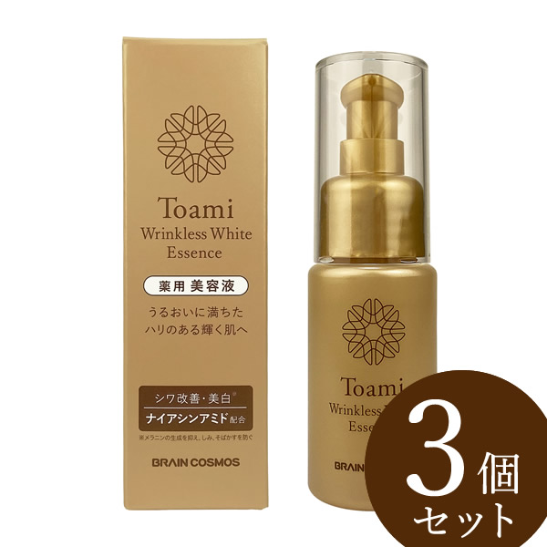 【商品詳細】 販売名: NAリンクルエッセンス M 効能・効果: シワを改善する。メラニンの生成を抑え、しみ、そばかすを防ぐ。肌あれ、あれ性。日やけ・雪やけ後のほてりを防ぐ。あせも・しもやけ・ひび・あかぎれ・にきびを防ぐ。油性肌。かみそりまけを防ぐ。肌をひきしめる。肌を正常にする。肌を整える。皮膚をすこやかに保つ。皮膚にうるおいを与える。 内容量: 30ml 原材料名: 【有効成分】ナイアシンアミド、グリチルリチン酸2K 【その他の成分】加水分解コラーゲン末、水溶性コラーゲン液-4、サクシニルアテロコラーゲン液、黒砂糖エキス、アセチル化ヒアルロン酸ナトリウム、ヒアルロン酸Na-2、加水分解ヒアルロン酸、プルーン酵素分解物、チンピエキス、キウイエキス、海藻エキス-1、アセロラエキス、マロニエエキス、カモミラエキス-1、タイムエキス-1、精製水、BG、濃グリセリン、グリセリン、グリセリルグルコシド液、POE硬化ヒマシ油、ヒドロキシエチルセルロース、カルボキシビニルポリマー、キサンタンガム、水酸化K、ジエチレントリアミン5酢酸5Na液、1,2-ペンタンジオール、フェノキシエタノール 使用方法: 洗顔後、化粧水等で肌を整えた後、適量(1~2プッシュ)を手に取り、顔全体に丁寧になじませてください。 使用上の注意: ●お肌に異常が生じていないかよく注意して使用して下さい。化粧品がお肌に合わないとき、即ち次のような場合には、使用を中止してください。そのまま、化粧品類の使用を続けますと、症状を悪化させることがありますので、皮膚科専門医等にご相談されることをおすすめします。 (1)使用中、赤み、はれ、かゆみ、刺激、色抜け(白斑等)や黒ずみ等の異常が現れた場合。 (2)使用したお肌に、直射日光があたって上記のような異常が現れた場合。 ●傷やはれもの、湿しん等の異常のある部位にはお使いにならないでください。 ●極端に高温または低温の場所、直射日光の当たる場所を避けて保管してください。 ●乳幼児の手の届かないところに保管してください。 ●使用後は必ずしっかりキャップをしめてください。 ●天然由来成分を配合しておりますので、商品によって色や香りが若干異なる場合や変わる場合がありますが品質には問題ございません。 生産国: 日本 区分: 医薬部外品 発売元: 株式会社ブレーンコスモス 製造販売元: 株式会社ミリオナ化粧品 注意事項: 当社では複数店舗で在庫を共有しており、システムで在庫調整を行っておりますが、TV放映等による一時的な注文数の増大や、在庫の更新タイミングにより在庫にずれが生じる場合がございます。 在庫更新が間に合わずご注文頂いた商品が欠品となる場合もございます。 欠品が生じた場合や商品の発送が遅れる場合は、改めてご連絡させていただきます。 ご迷惑をお掛けする場合がございますが、あらかじめご了承くださいませ。 広告文責: 株式会社エーウィル 0747-26-5566