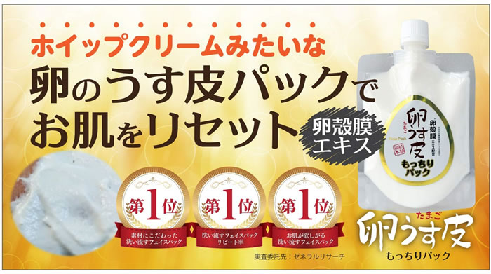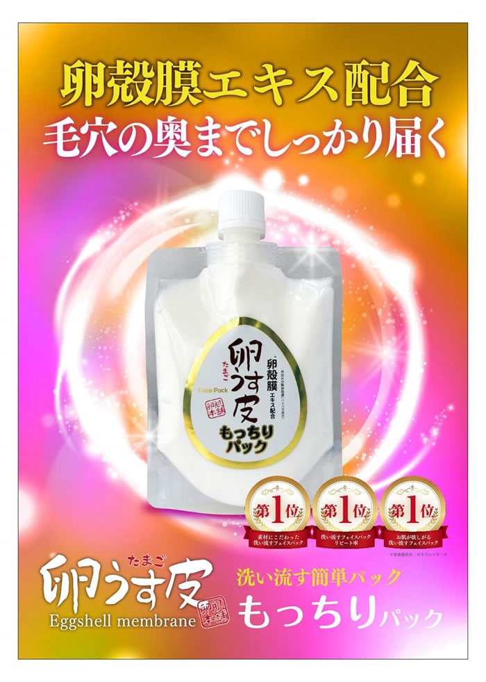 【商品詳細】 商品名: 卵肌本舗 卵うす皮 もっちりパック 内容量: 170g 成分/材質: 水、イソペンチルジオール、エチルヘキサン酸セチル、グリセリン、トリ(カプリル酸/カプリン酸)グリセリル、ステアリン酸グリセリル(SE)、ベヘニルアルコール、加水分解卵殻膜、スクワラン、卵黄油、サクシノイルアテロコラーゲン、加水分解ヒアルロン酸、ヒアルロン酸Na、水溶性コラーゲン、加水分解コラーゲン、セラミドAP、セラミドNP、セラミドEOP、フィトスフィンゴシン、ニオイテンジクアオイ油、ローズマリー葉油、レモングラス油、グリチルリチン酸2K、白金、アルギニン、トコフェロール、カプリリルグリコール、コレステロール、ステアリン酸、ポリソルベート60、ラウロイル乳酸Na、トリデセス-4カルボン酸Na、アクリル酸Naグラフトデンプン、キサンタンガム、ジメチコン、酸化チタン、水酸化AL、カルボマー、シクロデキストリン、炭酸水素Na、BG、フェノキシエタノール 区分: 化粧品 製造国: 日本 メーカー: アイ・プロダクツ 広告文責: 株式会社エーウィル 0747-26-5566