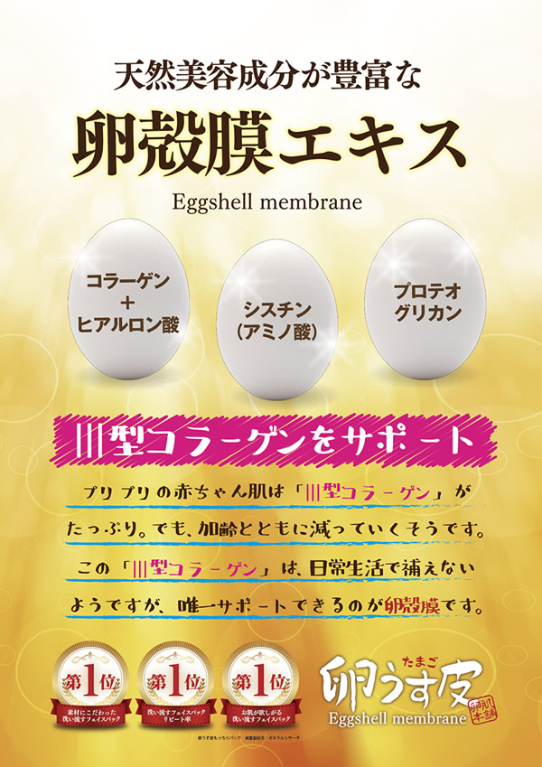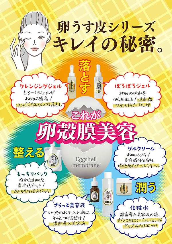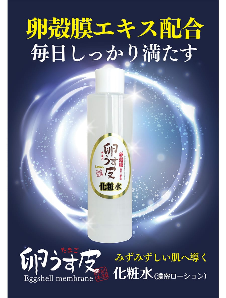 【商品詳細】 商品名: 卵うす皮 卵肌本舗 化粧水 商品説明: 7つの無添加(シリコンフリー、パラベンフリー、鉱物油フリー、合成着色料フリー、紫外線吸収剤フリー、タール系色素フリー、サルフェートフリー) 無香料でつけた瞬間すばやく馴染み、手のひらでもハリつき感がわかります。 ローションのベタつきも気にならず卵殻膜パワーで本来の潤いを取り戻しみずみずしい柔らか肌へ導きます。 導入美容液(卵うす皮さらっと美容液)後のご使用をおススメします。 卵殻膜とは… ゆで卵の殻と白身の間についている「白い薄皮」です。 卵殻膜エキスには、コラーゲン、ヒアルロン酸、18種類のアミノ酸、といった美容成分で構成され、人肌に近いタンパク質を保有する成分です。 原料・成分: 水、DPG、グリセリン、加水分解卵殻膜、プラセンタエキス、ヒアルロン酸Na、水溶性コラーゲン、加水分解コラーゲン、加水分解ヒアルロン酸、ヒアルロン酸ヒドロキシプロピルトリモニウム、アセチルヒアルロン酸Na、PEG-60水添ヒマシ油、ラウリン酸ポリグリセリル-10、アルギン酸Na、キサンタンガム、EDTA-2Na、クエン酸Na、クエン酸、フェノキシエタノール 内容量: 200ml ご使用方法: 洗顔後、適量を手やコットンにとり、お肌にやさしくなじませてください。 使用上のご注意: ●お肌に異常が生じていないかよく注意して使用してください。 ●お肌に合わない場合、傷・湿疹等お肌に異常があるときは、ご使用にならないでください。 ●ご使用中や使用後または直射日光が当たって、赤み・はれ・かゆみ・刺激・色抜け(白斑等)や黒ずみ等の異常が現れたときは、ご使用を中止し皮フ科専門医等にご相談されることをおすすめします。そのまま使い続けますと、症状が悪化することがあります。 ●目に入らないようご注意ください。目に入った場合は、こすらず直ちに充分洗い流してください。症状によっては眼科医の診察を受けてください。 ●乳幼児の手の届かないところに保管してください。 ●極端に高温または低温の場合、直射日光のあたる場所に保管しないでください。 区分: 化粧品 原産国: 日本 製造元: ビューティードア株式会社 発売元: 株式会社アイ・プロダクツ 広告文責: 株式会社エーウィル 0747-26-5566