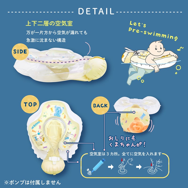 【商品詳細】 商品名: スイマーバ タミリング 商品説明: ハイハイの姿勢から始まるプレスイミングで手足を自由に動かしながら楽しく水遊び! お腹を下向きにして装着し、自然なスイミング姿勢をキープできる新しい形の浮き輪が登場! 種類: キャンディベア セット内容: 本体、日本語公式ガイド サイズ: うきわ内径(横幅) 約17cm うきわ内周 約60cm 素材: 塩化ビニル樹脂(PVCプラスチック) ご注意: ●ご使用の際は必ず保護者の目の前で使用し、手の届く範囲でお使いください。 ●浮き輪から辛さからだが抜ける場合は使用を中止してください。 メーカー: 有限会社FUNAZAWA 注意事項: 当社では複数店舗で在庫を共有しており、システムで在庫調整を行っておりますが、TV放映等による一時的な注文数の増大や、在庫の更新タイミングにより在庫にずれが生じる場合がございます。 在庫更新が間に合わずご注文頂いた商品が欠品となる場合もございます。 欠品が生じた場合や商品の発送が遅れる場合は、改めてご連絡させていただきます。 ご迷惑をお掛けする場合がございますが、あらかじめご了承くださいませ。 広告文責: 株式会社エーウィル 0747-26-5566