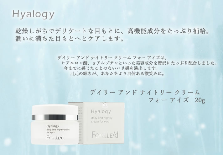 【商品詳細】 商品名: デイリーアンドナイトリークリーム フォーアイズ 商品説明: 乾燥しがちでデリケートな目もとに、高機能成分をたっぷり補給。 潤いに満ちた目もとへとケアします。 デイリーアンドナイトリークリーム フォーアイズは、ヒアルロン酸、αアルブチンといった美容成分を贅沢にたっぷり配合しました。 今までに感じたことのないハリ感を演出します。 目元の輝きが、あなたをより自信ある微笑みに。 内容量: 20g 主成分: ヒアルロン酸Na、スクワラン、セラミド3、α-アルブチン、加水分解卵殻膜、加水分解コンキオリン、ユキノシタエキス、ヘチマエキス、マンヌロン酸メチルシラノール、センブリエキス 使い方、注意事項: 朝晩、化粧水で整えたお肌にご使用ください。 使用量の目安は、小パール1粒分で両方のお目元となります。 製造国:日本