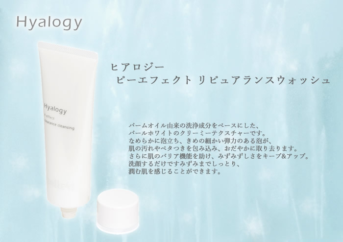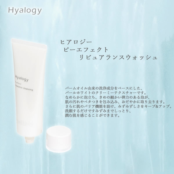 【商品詳細】 商品名: ヒアロジー ピーエフェクト リピュアランスウォッシュ 商品説明: パームオイル由来の洗浄成分をベースにした、パールホワイトのクリーミーテクスチャーです。 なめらかに泡立ち、きめの細かい弾力のある泡が、肌の汚れやベタつきを包み込み、おだやかに取り去ります。 さらに肌のバリア機能を助け、みずみずしさをキープ&アップ。 洗顔するだけですみずみまでしっとり、潤む肌を感じることができます。 内容量: 100g 成分: 低分子ヒアルロン酸、低分子EMプロテイン、低分子パールプロテイン、リピジュア、グリチルリチン酸2K、アミノミックス 使い方・注意事項: 顔を濡らした後、適量を手のひらの上で少しづつ水を加えながらよく泡立て、顔全体を包み込むようにやさしく洗います。 その後、水またはぬるま湯で十分に洗い流してください。 ※泡立てネットをお使いいただくと、さらにきめ細かい泡をより簡単に作ることができます。 製造国:日本