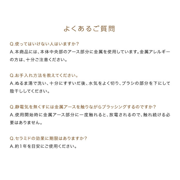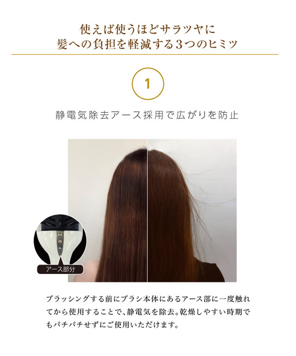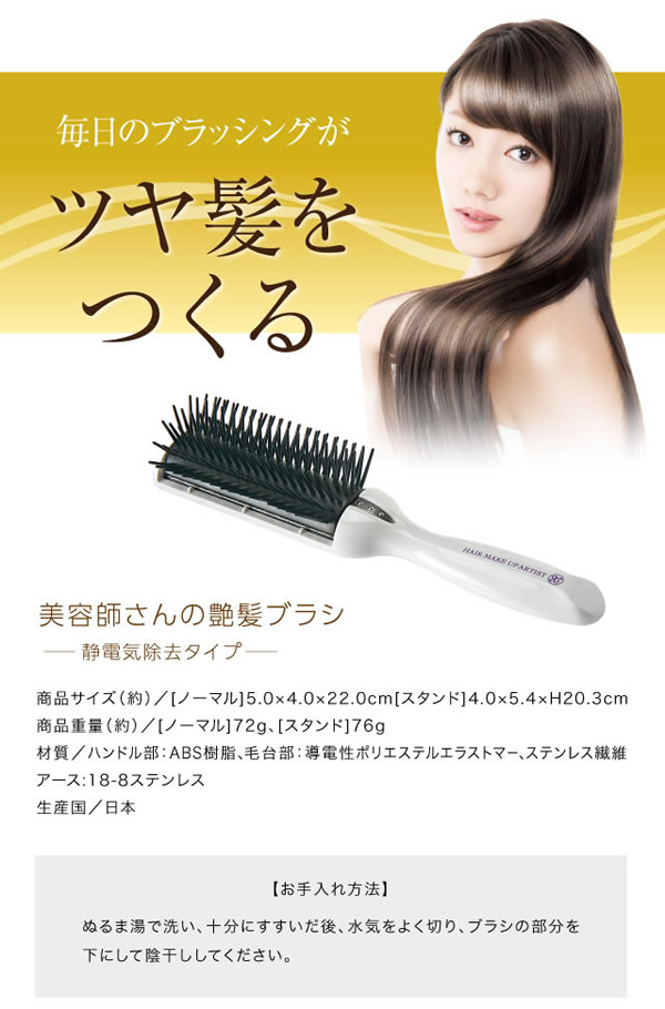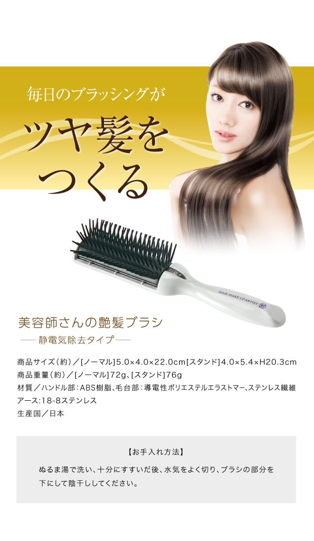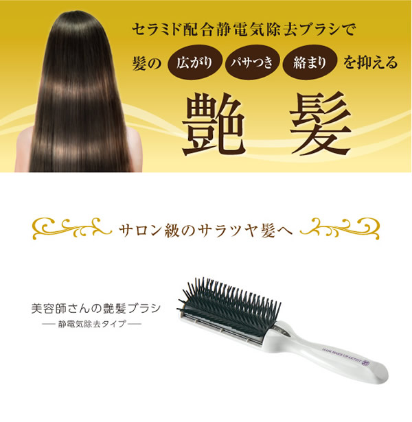 【商品詳細】 商品名: 美容師さんの艶髪ブラシ 静電気除去タイプ 商品説明: 美容師さんと商品開発。好評の艶髪ブラシの第2弾! セラミド配合のブラシが梳かすたびに髪を艶やかにします。 静電気除去システムでブラシから静電気が除去され、ブラッシングするだけで艶髪にまとまります。 材質: ハンドル部:ABS樹脂 毛台部:導電性ポリエステルエラストマー、ステンレス繊維 アース部:18-8ステンレス 区分: ヘアケア 生産国: 日本 メーカー: 株式会社ドリーム 広告文責: 株式会社エーウィル 0747-26-5566
