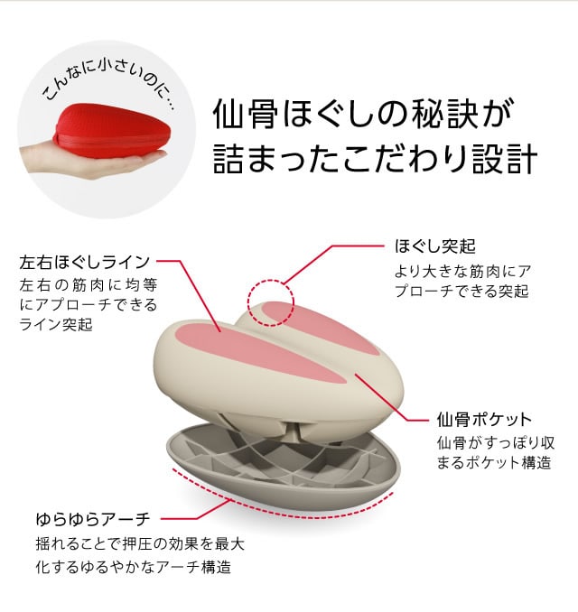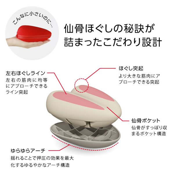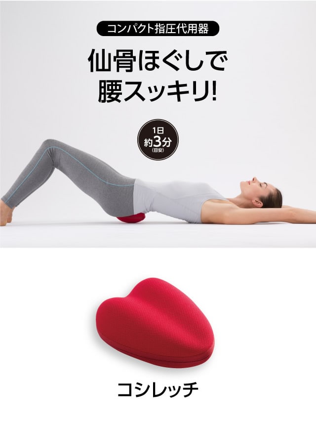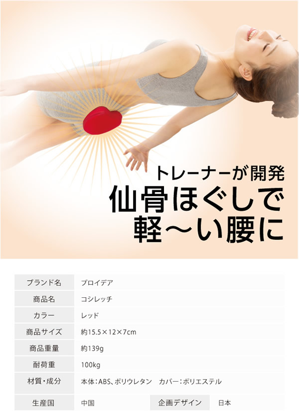 【商品詳細】 商品名: コシレッチ 商品説明: 仙腸関節・腰仙関節まわりの筋肉にアプローチできます。 仙骨周りの筋肉をほぐすと同時に腰のストレッチも行うことが出来ます。 サイズ: W15.5×D12×H7cm 材質: 本体 ABS樹脂、ポリウレタン 本体カバー ポリエステル100% 区分: 健康グッズ 生産国: 中国 メーカー: 株式会社ドリーム 広告文責: 株式会社エーウィル 0747-26-5566