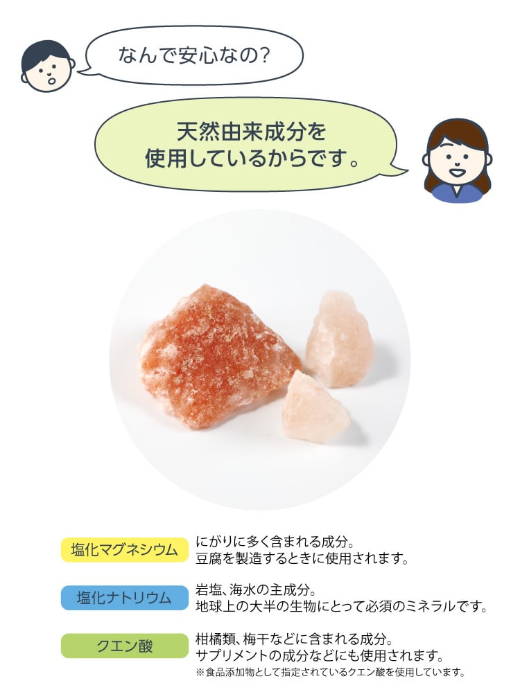 水、塩化マグネシウム、塩化ナトリウム、クエン酸