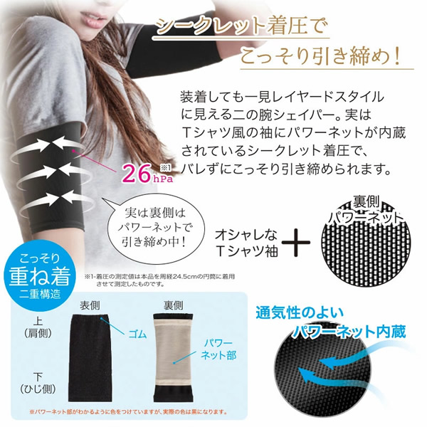 こっそり重ね着 二の腕シェイパー 二の腕シェイパー 着圧 加圧 二の腕 サポーター 二の腕カバー 引き締め スリム 補正