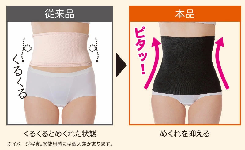 2.ゆっくりと引き上げ、ウエストにきっちりと合わせたら、本品のたるみ、歪みを整えてご使用ください。