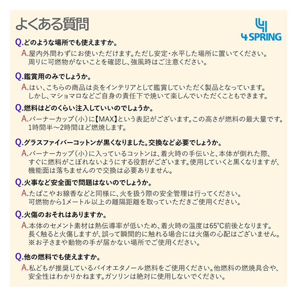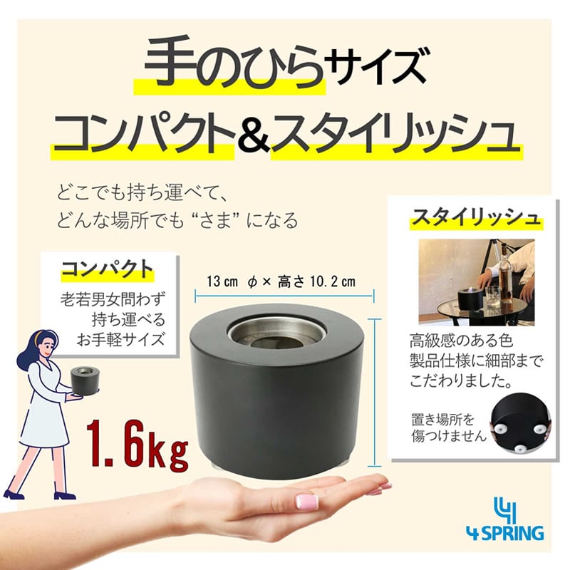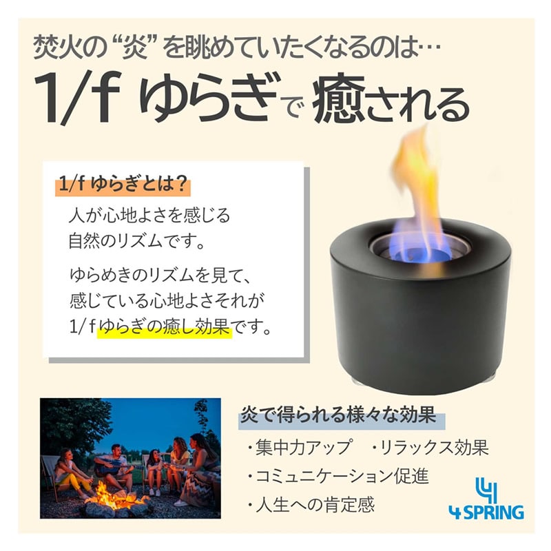 【商品詳細】 商品名: フォースプリング テーブルファイヤーピット 商品説明: 本物の炎を、室内・屋外どこででも楽しめる、コンパクトなバイオエタノール暖炉。 電気やガスを使わないため、地球にもやさしい、バイオエタノール燃料を使用! 煙やにおいもなく、特別な設備も必要ありません。炎のゆらぎを見ながら、贅沢なひとときを。 カラー: ダークグレー 商品内容: 本体、アクセサリー(燃料カップ、蓋) サイズ: φ13×10.2cm 質量: 約1600g 材質: 本体 セメント アクセサリー ステンレススチール 製造国: 中国 区分: 雑貨 メーカー: 株式会社トランスペクト 注意事項: 当社では複数店舗で在庫を共有しており、システムで在庫調整を行っておりますが、TV放映等による一時的な注文数の増大や、在庫の更新タイミングにより在庫にずれが生じる場合がございます。 在庫更新が間に合わずご注文頂いた商品が欠品となる場合もございます。 欠品が生じた場合や商品の発送が遅れる場合は、改めてご連絡させていただきます。 ご迷惑をお掛けする場合がございますが、あらかじめご了承くださいませ。 広告文責: 株式会社エーウィル 0747-26-5566