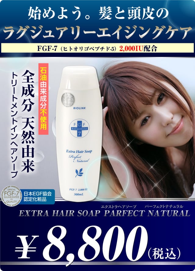【商品詳細】 商品名: FGF7エクストラヘアソープPN 商品説明: 石油由来成分を一切使わず、100%天然由来成分で出来たトリートメントインヘアソープです。 頭皮、毛髪をすこやかに保つヒトオリゴペプチド-5(FGF-7)2,000IU配合。 内容量: 300ml 全成分: 水(精製水)、プロパンジオール(トウモロコシ)、ココイル加水分解、コラーゲンK(フィッシュコラーゲン)、ココイルアラニンTEA(ヤシ)、ラウラミドプロピルアミンオキシド(ヤシ等)、グリセリン(ヤシ等)、コカミドメチルMEA(ヤシ)、ヒトオリゴペプチド-5(発酵法)、デキストリン(タピオカ等)、ボタンエキス(ボタンピ)、フユボダイジュ花エキス(ボダイジュ)、コンフリー葉エキス(コンフリー)、ローズマリー葉エキス(ローズマリー)、カミツレ花エキス(カミツレ)、スクワラン(深海鮫)、グアーヒドロキシプロピルトリモニウムクロリド(グアー)、トレハロース(トウモロコシ等)、ハチミツ(ハチミツ)、マンニトール(トウモロコシ)、ポリクオタニウム-10(パルプ)、グレープフルーツ種子エキス(グレープフルーツ)、ココイルグルタミン酸TEA(ヤシ等)、ラベンダー油(ラベンダー) ※( )内は原料由来 使用方法: 髪をよく湿らせてから、適量をつけ、頭皮をやさしくマッサージするように泡立てて下さい。 その後よくすすいで下さい。 製造国: 日本 区分: 化粧品 メーカー: 株式会社バイオリンク販売 注意事項: 当社では複数店舗で在庫を共有しており、システムで在庫調整を行っておりますが、TV放映等による一時的な注文数の増大や、在庫の更新タイミングにより在庫にずれが生じる場合がございます。 在庫更新が間に合わずご注文頂いた商品が欠品となる場合もございます。 欠品が生じた場合や商品の発送が遅れる場合は、改めてご連絡させていただきます。 ご迷惑をお掛けする場合がございますが、あらかじめご了承くださいませ。 広告文責: 株式会社エーウィル 0747-26-5566