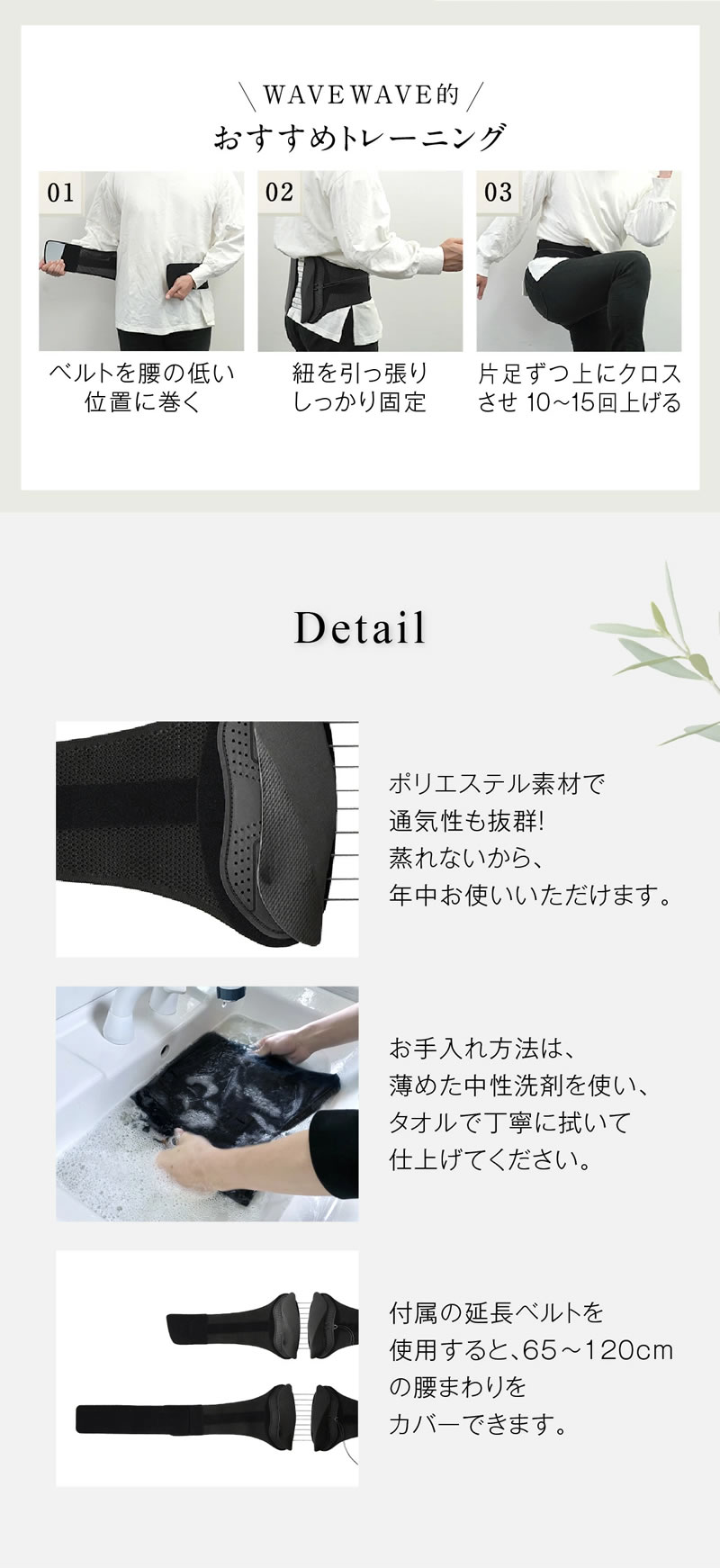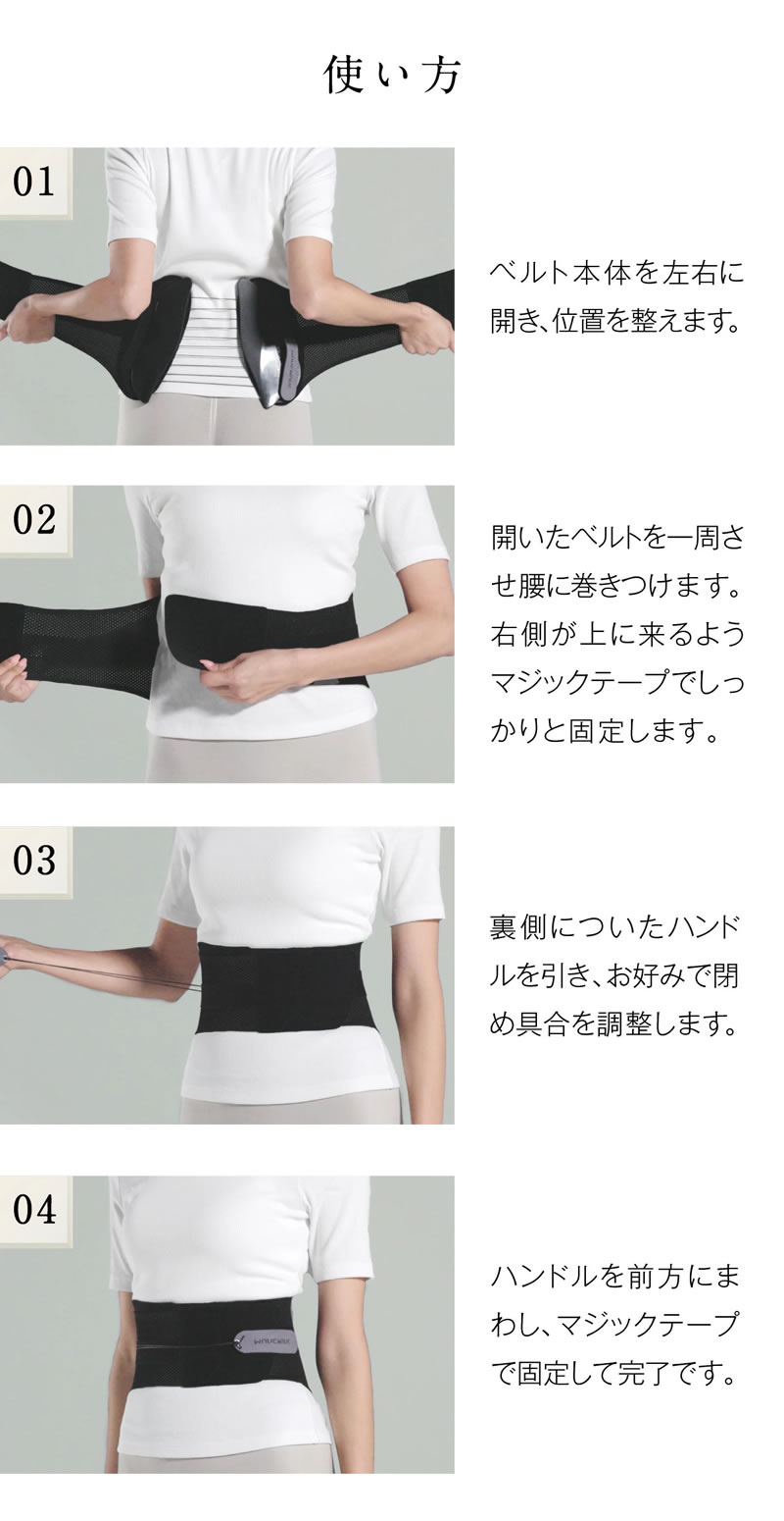 【商品詳細】 商品名:WAVEWAVE LUMBAR BELT 商品説明: 腰にひと巻きするだけで、骨盤の位置を正確にし、無理をせず、すっと姿勢補正正ができる「WAVEWAVE ランバーベルト(補助ベルト・骨盤ベルト)」。 小さな力でハンドルを引っ張るだけで、驚くほど腰まわりが安定し、負担もかけません。 心地よい体幹を保ちながら、良い姿勢を「習慣化」させてくれる腰ベルト! 腰が痛い、姿勢が悪い、という悩みをはじめ、腰まわりが緩んできた、ぽっこりお腹が気になる…など引きも切らない腰まわり事情を一気に解決してくれる話題のアイテム。 WAVEWAVEはこれらの不調の原因である「骨盤のゆがみ」に着目し、それを整えるべく、年代や性別問わずどなたでも使える腰サポーターを開発。 最小限の力で驚きの固定力を発揮する『4×5の滑車構造』、肌に伝わる柔らかな感触がストレスにならない『ウェーブ構造』など使い続けるほどにその実用性を実感していただけるアイテムです。 サイズ:約65~120cm(付属延長べルト装着時) 重量: 本体 約251g 延長べル卜 約30g 材質:ポリエステル、ナイロン、ナイ口ン纎維、ポリウレタン織維、高密度ポリエチレン織維、亜鉛合金、PP 以下に当てはまる方は本製品を使わないでください: ・脊柱管狭窄症、椎間板ヘルニア、痛風、急性疾患のある方 ・血行障害、毛細血管拡張、高血圧など血圧や血管に異常のある方 ・アレルギー体質、皮膚病のある方 ・かぶれ、痒みのでやすい方 ・装着部位に傷や怪我、知覚障害がある方 ・妊娠中または妊娠の可能性がある方 ・成長期のお子さま ※上記に当てはまらない場合でも、ご使用に不安がある方は医師に相談してください。 ・初めて使用する際はベルトを締めすぎないよう注意し、まずは15分程度から様子を見ながら使用してください。 ・就寝時は使用しないでください。 ・本製品をきつく締めすぎないようにしてください。 ・装着時に激しい運動はしないでください。 ・本製品を分解、改造、修理しないでください。 ・本製品が破損している状態で使用しないでください。 ・腰まわり以外では使用しないでください。 ・着け心地が悪いなどの違和感がある場合はただちに使用を中止してください。 ・背もたれが固い椅子に背部を押し当てて長時間もたれかからないでください。 使用上の注意: ・装着時マジックテープが衣類に貼りつかないよう注意してください。 ・ハンドルはマジックテープでベルト本体にしっかり貼りつけてください。 ・濡れたり、他の衣類や椅子などとこすれると色が移る可能性があります。 ・火気のそばや高温多湿の場所、直射日光を避けて保管してください。 ・子どもやペットの手の届かない場所に保管してください。 ・各自治体が指定している破棄方法に従って破棄してください。 区分:雑貨 製造国:中国 メーカー:有限会社セブンウェイブ 注意事項: 当社では複数店舗で在庫を共有しており、システムで在庫調整を行っておりますが、TV放映等による一時的な注文数の増大や、在庫の更新タイミングにより在庫にずれが生じる場合がございます。 在庫更新が間に合わずご注文頂いた商品が欠品となる場合もございます。 欠品が生じた場合や商品の発送が遅れる場合は、改めてご連絡させていただきます。 ご迷惑をお掛けする場合がございますが、あらかじめご了承くださいませ。 広告文責:株式会社エーウィル 0747-26-5566 【様々な贈り物にご利用いただけます】 内祝い・お返し: 出産内祝い 結婚内祝い 新築内祝い 快気祝い 入学内祝い 結納返し 香典返し 引き出物 結婚式 引出物 法事 引出物 お礼 謝礼 御礼 お祝い返し 成人祝い 卒業祝い 結婚祝い 出産祝い 誕生祝い 初節句祝い 入学祝い 就職祝い 新築祝い 開店祝い 移転祝い 退職祝い 還暦祝い 古希祝い 喜寿祝い 米寿祝い 退院祝い 昇進祝い 栄転祝い 叙勲祝い 大切な人への贈り物に: お父さん お母さん 兄弟 姉妹 子供 おばあちゃん おじいちゃん 奥さん 彼女 旦那さん 彼氏 恩師 先生 親友 友達 職場 先輩 後輩 同僚 その他・法人向け: プレゼント お土産 手土産 プチギフト お見舞 ご挨拶 引越しの挨拶 誕生日 バースデー お取り寄せ 開店祝い 開業祝い 周年記念 記念品 お茶請け 菓子折り おもたせ 贈答品 挨拶回り 定年退職 転勤 お客様 来客 ご成約記念 表彰 季節のご挨拶: 御正月 お正月 御年賀 お年賀 御年始 節分 旧正月 バレンタインデー 七五三 ひな祭り ホワイトデー 卒業 卒園 入学 入社 就職 新生活 新年度 ゴールデンウイーク こどもの日 母の日 父の日 初盆 お盆 御中元 お中元 お彼岸 残暑御見舞 残暑見舞い 敬老の日 運動会 体育祭 学園祭 寒中お見舞 クリスマス バレンタイン お歳暮 御歳暮