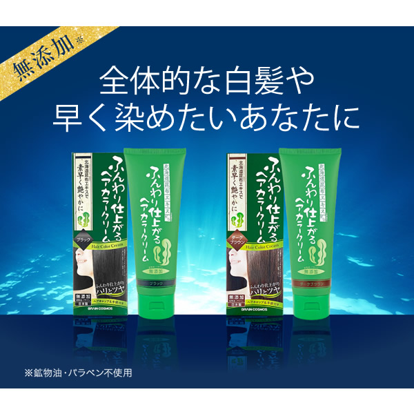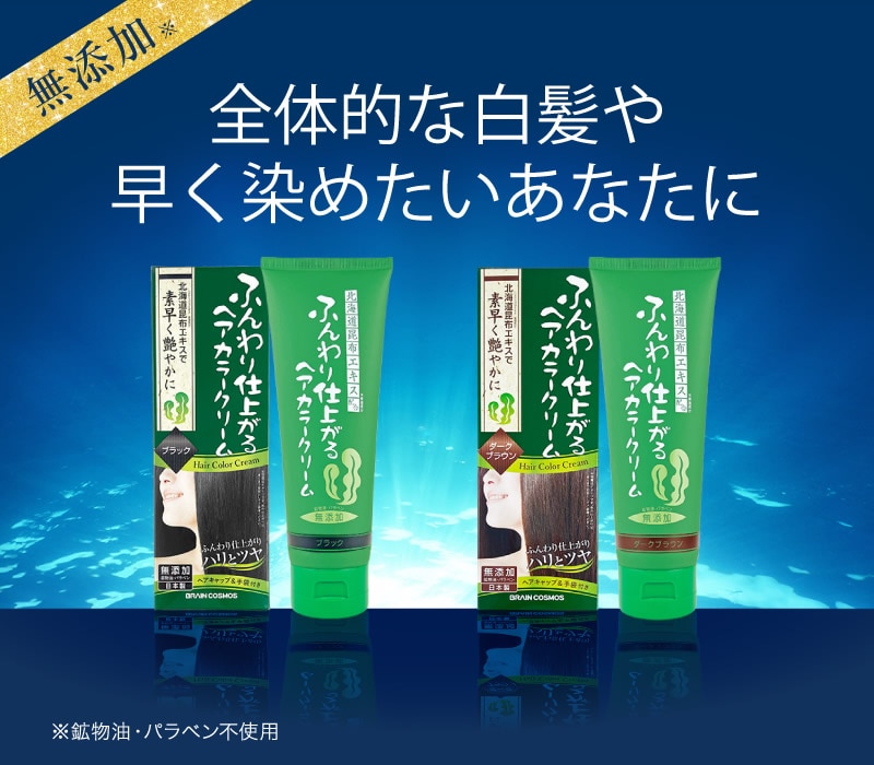 【商品詳細】 商品名: ふんわり仕上がる ヘアカラークリーム 商品説明: 利尻昆布エキスを配合したヘアカラークリーム。 髪をいたわりながらハリ・ツヤ・コシを与え、ジアミン系染料は酸性基を含まない「水溶性染料」で、髪にやさしく、徐々に染まることによって白髪をきれいに仕上げます。 内容量: 200g 成分: [ブラック] 水、セテアリルアルコール、グリセリン、ベヘントリモニウムクロリド、BG、リシリコンブエキス、マコンブエキス、加水分解コンキオリン、加水分解ケラチン(羊毛)、水溶性コラーゲン、ヒアルロン酸Na、セトリモニウムクロリド、アモジメチコン、ステアルトリモニウムクロリド、ジココジモニウムクロリド、イソプロパノール、乳酸、エタノール、カプリリルグリコール、1,2-ヘキサンジオール、香料、フェノキシエタノール、黒401、紫401、橙205、赤106、青1、ベンジルアルコール [ダークブラウン] 水、ミリスチルアルコール、ジメチコン、パルミチン酸エチルヘキシル、ヒマシ油、BG、ジアルキル(C12-18)ジモニウムクロリド、ベヘニルアルコール、ステアルトリモニウムブロミド、リシリコンブエキス、ヘキサ(ヒドロキシステアリン酸/ステアリン酸/ロジン酸)ジペンタエリスリチル、オレス-2、イソプロパノール、ダイズ油、クエン酸、トコフェロール、フェノキシエタノール、香料、塩基性青99、塩基性茶16、HC赤3、HC青2、HC黄2 使用方法: 1.シャンプー後、タオルで髪の水分をよく拭き取り、手のひらに適量を取り、生え際や分け目など、塗り残しが無いように髪全体にまんべんなく塗布します。 2.塗布後、ヘアキャップを装着することで、ヘアカラークリームの浸透力を高めてくれます。約10~15分程放置します。 3.ぬるま湯で色水がなくなるまで、すすぎます。塗ってから、流すまで白髪剤特有のツンするニオイはなく、フルーティーフローラルの香りが持続します。 使用上の注意: ●お肌に合わないときは、ご使用をおやめください。 ●アレルギー体質と思われる方やお肌が敏感な方は腕の内側等でパッチテストを行い、かゆみ、刺激等の異常がないか確かめてからご使用ください。 ●お肌に異常が生じていないかよく注意して使用してください。使用中に赤み、はれ、かゆみ、刺激、色抜け(白斑等)や黒ずみ等の異常があらわれた場合、または使用したお肌に直射日光があたって上記のような異常があらわれた場合には使用を中止し、皮膚科専門医等にご相談されることをおすすめします。 ●カラークリームや洗髪時のすすぎ湯が絶対目に入らないようにしてください。万一、目に入った特は、絶対にこすらないで、ただちに水またはぬるま湯で15分以上よく洗い流し、すぐに眼科専門医の診療を受けてください。 ●衣類、家具、壁、床、浴室などに色がつくと、落ちない場合があります。 ●お肌への付着にご注意ください。カラークリームはお肌や頭皮につくと、なかなか色が落ちません。ご使用の際は、必ずビニール手袋をご用意いただきご使用ください。 ●すすぎの際に色水が出なくなっても、数日間は色落ちや、衣類等への色移りの可能性がありますのでご注意ください。 生産国: 日本 区分: 化粧品 製造販売元: 株式会社ブレーンコスモス 注意事項: 当社では複数店舗で在庫を共有しており、システムで在庫調整を行っておりますが、TV放映等による一時的な注文数の増大や、在庫の更新タイミングにより在庫にずれが生じる場合がございます。 在庫更新が間に合わずご注文頂いた商品が欠品となる場合もございます。 欠品が生じた場合や商品の発送が遅れる場合は、改めてご連絡させていただきます。 ご迷惑をお掛けする場合がございますが、あらかじめご了承くださいませ。 広告文責:株式会社エーウィル 0747-26-5566