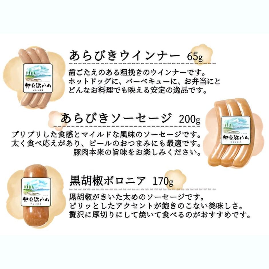 豚肉(宮城県産)、食塩、香辛料(大豆を含む)/調味料(アミノ酸等)、リン酸塩(Na)、ブドウ糖、酸化防止剤(V.C)、酸味料、香料、発色剤(亜硝酸Na)
