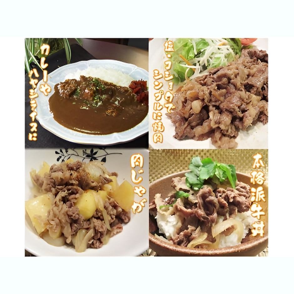 香り高く旨味のある美味しい赤身肉が特徴で、煮て良し、焼いて良しと使い勝手抜群の切落しです。