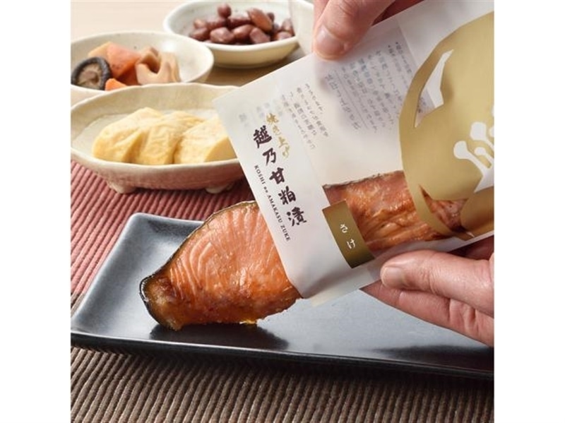 『越乃甘粕漬』は、特別な甘酒と酒粕を組み合わせ、すっきりとした甘さの後にほのかな酒粕の香りとコクのある、上質なうまさを実現しました。