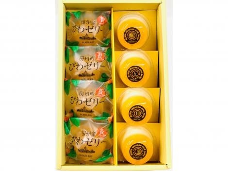房州びわを原料に使用した、道の駅とみうら枇杷倶楽部オリジナルの「びわゼリー」と「枇杷ムース&ゼリー」のセットをお届けします。