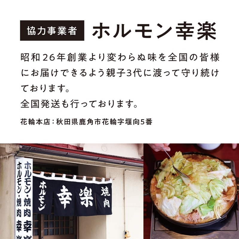 鹿角市のソウルフード「幸楽ホルモン」をいつでもどこでも食べられる缶詰にしてお届けします。