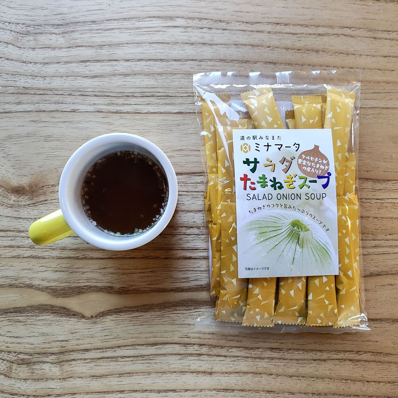 食塩(国内製造)、グラニュー糖、オニオン、たまねぎ粉末(熊本県水俣産)、乾燥ねぎ、チキン風味シーズニング、醤油顆粒、玉葱外皮粉末/調味料(アミノ酸等)、加工デンプン、着色料(カラメル)、酸味料、香料、(一部に小麦・大豆・鶏肉を含む)
