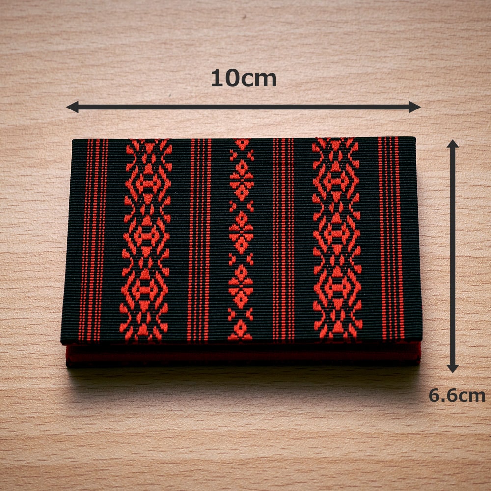 二つ折り名刺入れ 献上柄 黒赤×1