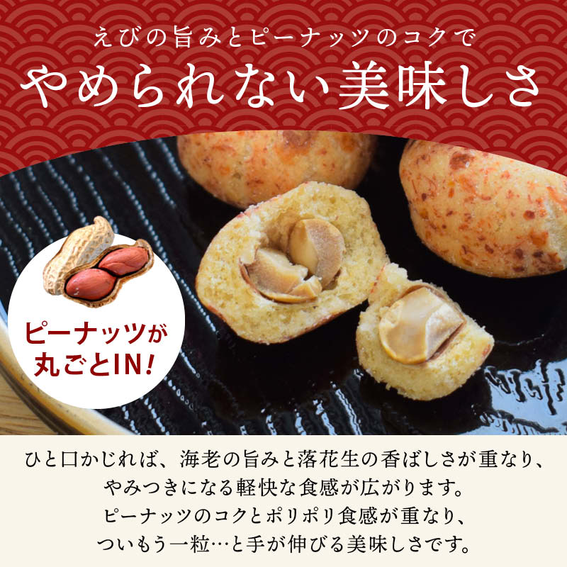 海老の旨味とピーナッツのやみつきサクサク食感。