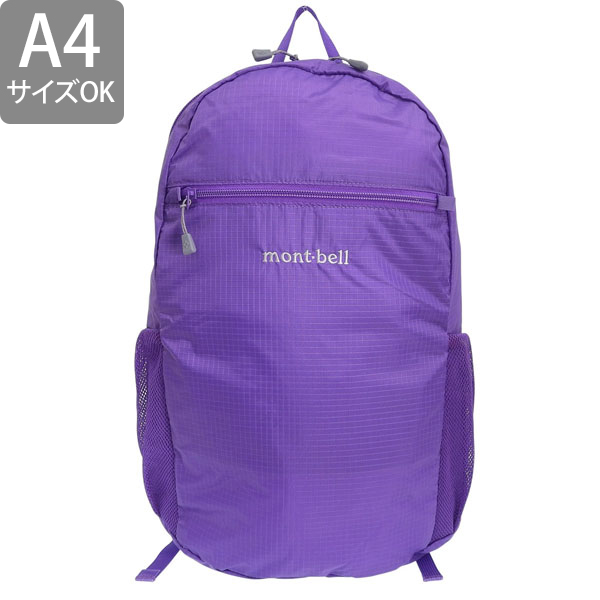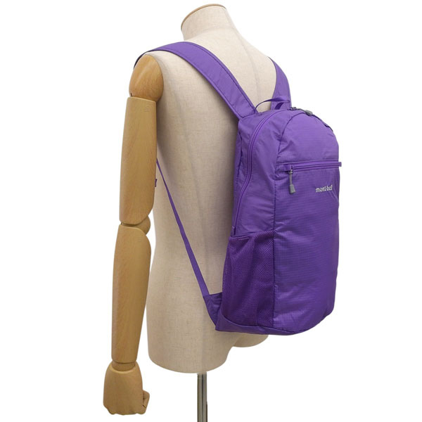 モンベル/mont-bell/リュックサック/ポケッタブル/ライトパック/15 軽量でコンパクトに折りたためるデイパックです。パック本体を内ポケットに収納できる仕様で持ち運びも簡単。フロントポケットとサイドポケットを備え、小物の整理にも便利。薄手の生地で、日常使いやサブバッグとしても活躍します。【ギフトにもおすすめです。】 ●品番:1133470 ●サイズ:約高さ44.5×幅26.5×マチ14.5cm(折りたたみ時:16.5×19.5cm) 持ち手全長約16.5cm ショルダー全長約88.5cm(取外不可)(長さ調節可) ●重さ:187g ●仕様:メイン開閉:ファスナー、内ポケット×1、外ポケット×3 ●素材:70デニール・ナイロン・リップストップ[ウレタン・コーティング] ●カラー:パープル(PU) ●付属:なし