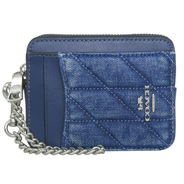 コーチ/COACH/カードケース/ZIP/CC/QLT/DNM ふっくらとしたナッパレザーのキルティングは、触れるたびに心が弾む上質感。スリムながら小銭、鍵、カードを機能的に集約し、開閉しやすいファスナーで中身の出し入れもスマートです。【ギフトにもおすすめです。】 ●品番:CAR26SVDE ●サイズ:約高さ8×幅10.5×マチ2cm ●重さ:約75g ●仕様:開閉:ファスナー式 外側 :ポケット1、クリアポケット1、チェーン リスト ストラップ ●素材:デニム×レザー ●カラー:DENIM ●付属:なし