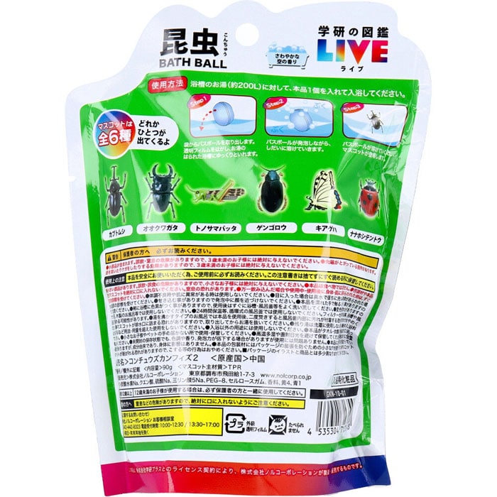 [20個セット=1BOX] 学研の図鑑ライブ 昆虫バスボール2 BATH BALL 入浴剤 バスボム