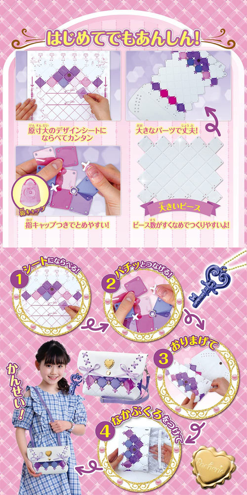 糸を使わずにカラフルなピースをつなげて、ファッション小物が作れちゃう!
