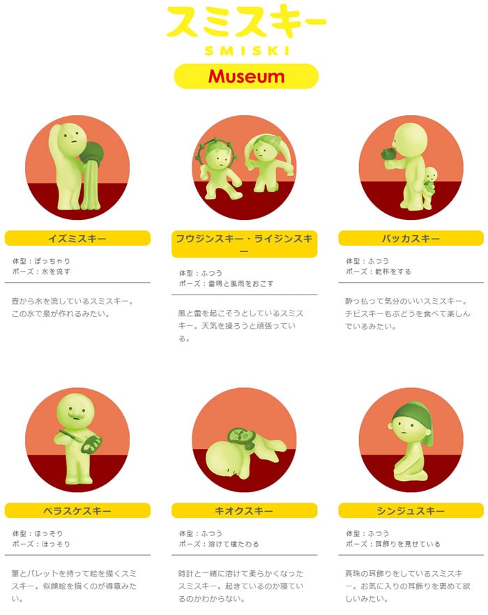 そのアートを見たスミスキーが人間たちの真似をして、世界の名画やアーティストになってお部屋のスミにあなただけの秘密のミュージアムを作り始めたようです…。