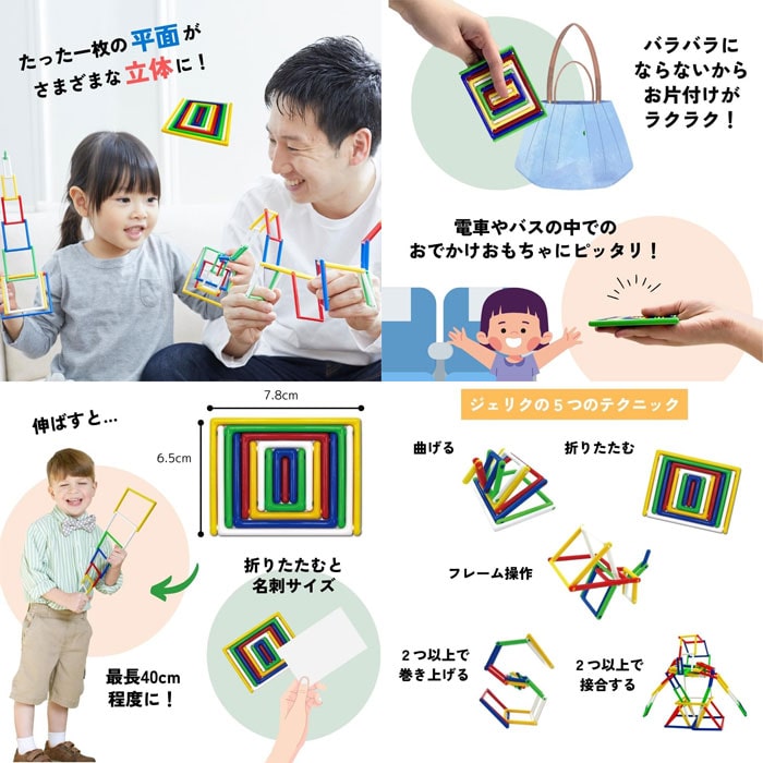 台湾生まれのプラスチック知育トイ・JELIKU(ジェリク)。たった1枚の平面からさまざまな立体に姿を変える、革新的なトイです。