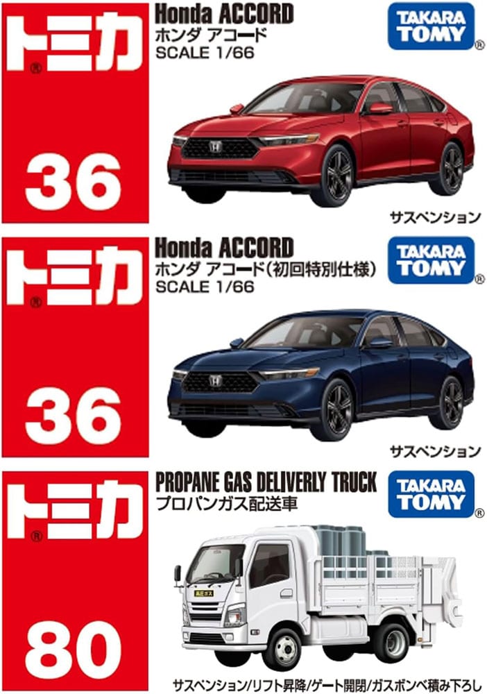 トミカ 3点セット (No.36 ホンダ アコード 初回版&通常版 + No.80 プロパンガス配送車)