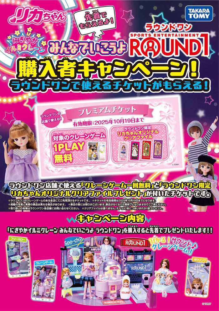 屋内型複合レジャー施設「ROUND1(ラウンドワン)」とリカちゃんのコラボレーション!