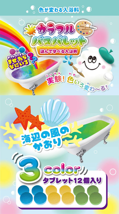 遊んで学べる入浴料。混ぜたらどんな色になるかな?