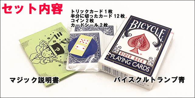 “10コのマジック”と、世界中のマジシャンが愛用している「バイスクル」トランプがセットになっています。