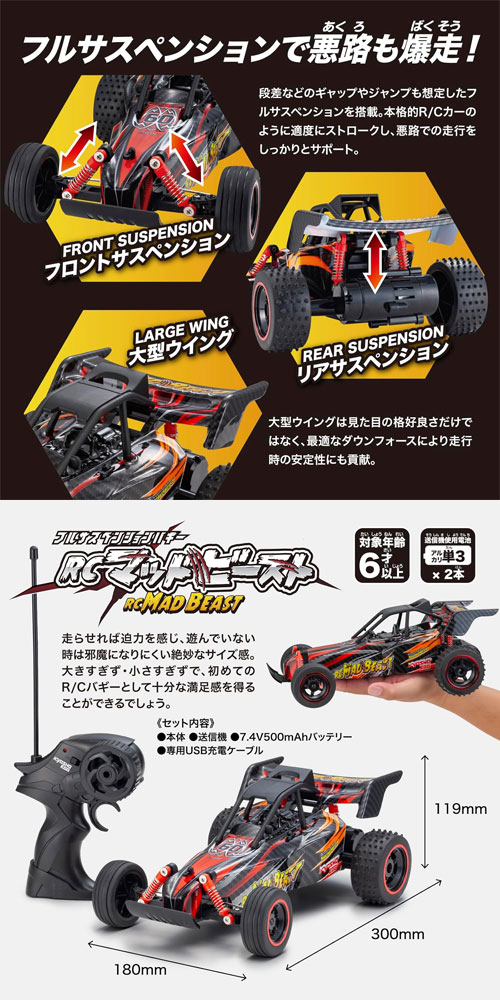 爆走する「マッドビースト」で、R/Cバギーの醍醐味を手軽に満喫してください。